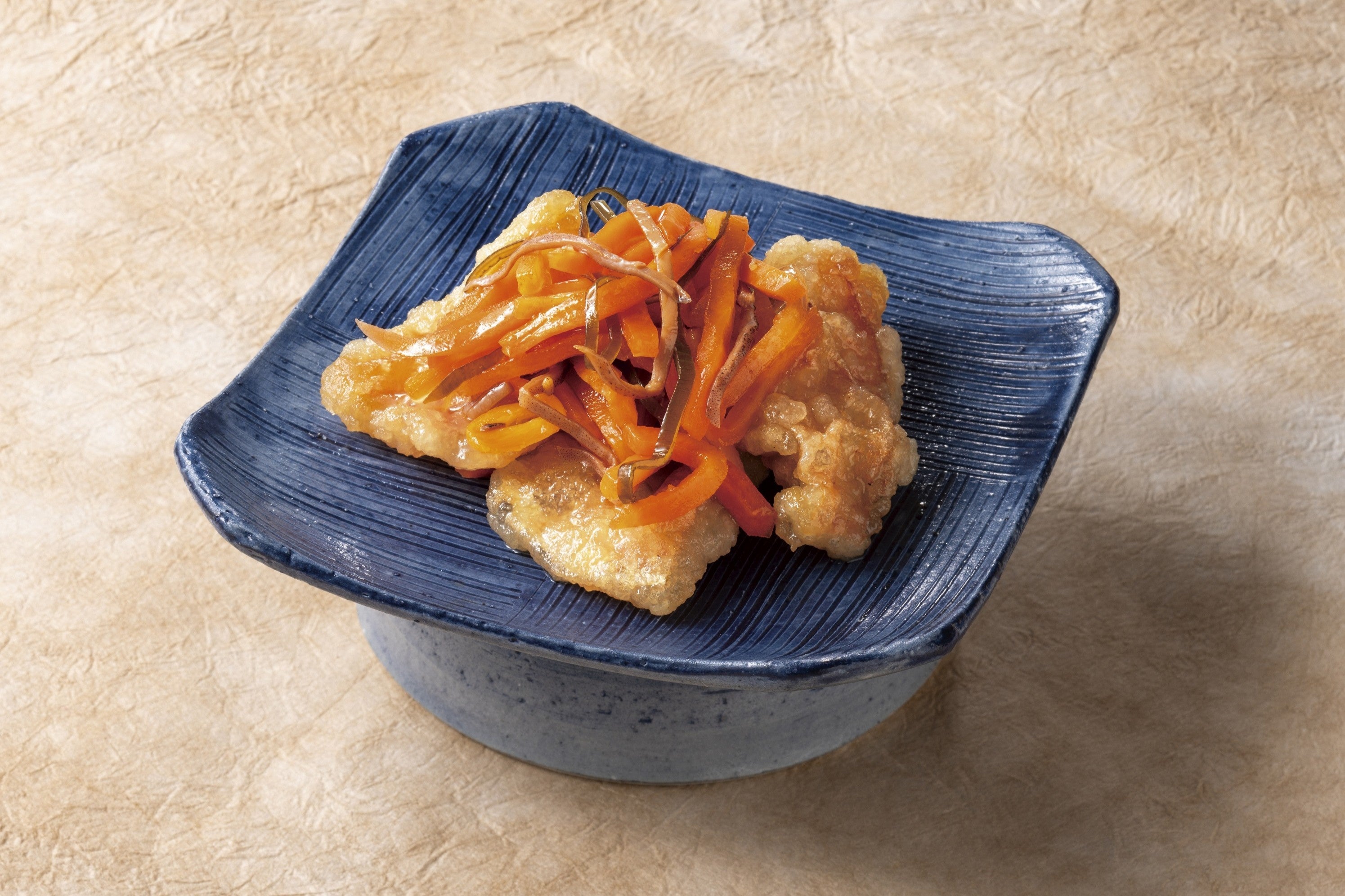 目光の身の柔らかさを活かした唐揚げ。香ばしい衣とジューシーな旨味が味わえます。