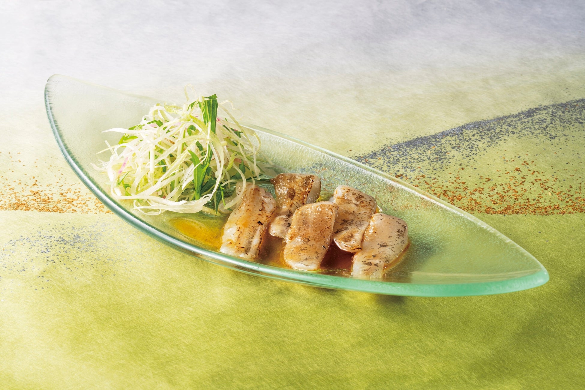 刺身用の新鮮な目光を炙ったシンプルなカルパッチョ。脂のりがよく淡白ながら濃厚な味わいが楽しめます。