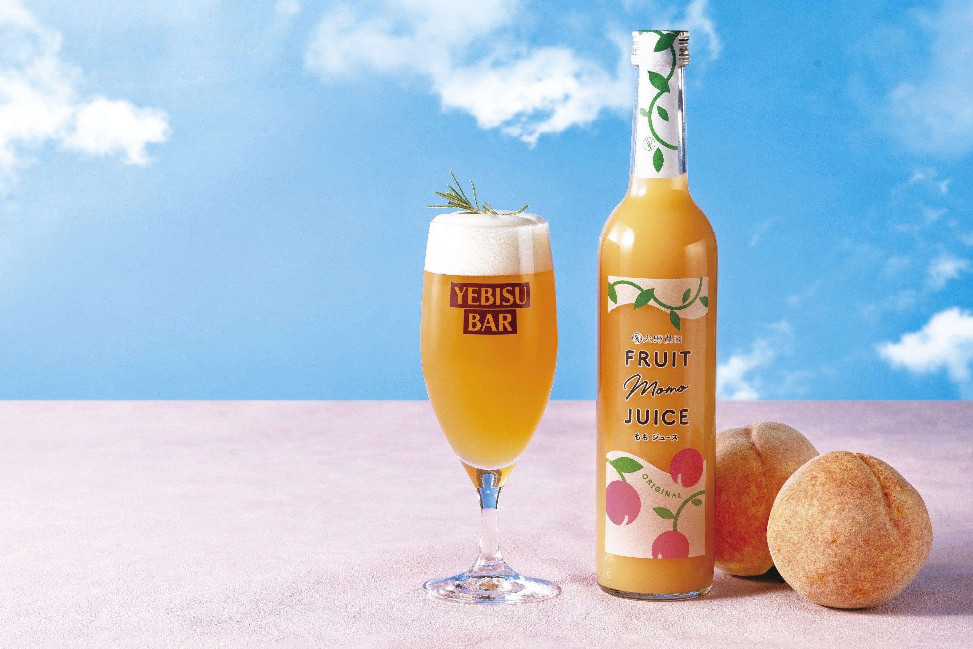 福島県産の桃ジュースとヱビスビール、ジンジャーエールなどをあわせた、やさしい甘みと香りがする軽やかな味わいのビヤカクテルです。