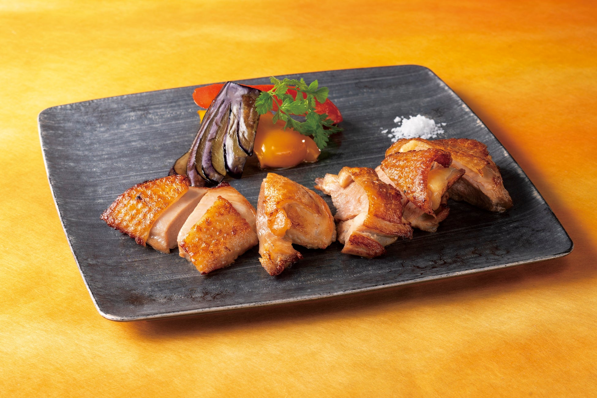 川俣シャモの本来の旨味である適度な脂と深みのあるコクを、琥珀ヱビスの奥行ある味わいでさらに引き立てた、シンプルなグリルです。