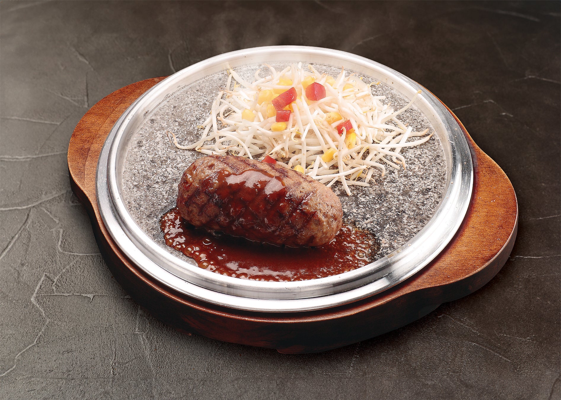 独自のレシピで俵型に形成し、石盤にのせて焼き上げるビーフ100%のハンバーグとステーキが自慢のレストラン。このほか、チキングリル、海老フライ、各種アペタイザーやサラダなど、豊富なメニューを取り揃え、学生さんからご家族、ご年配の方まで、幅広いお客様にカジュアルにお楽しみいただいています。