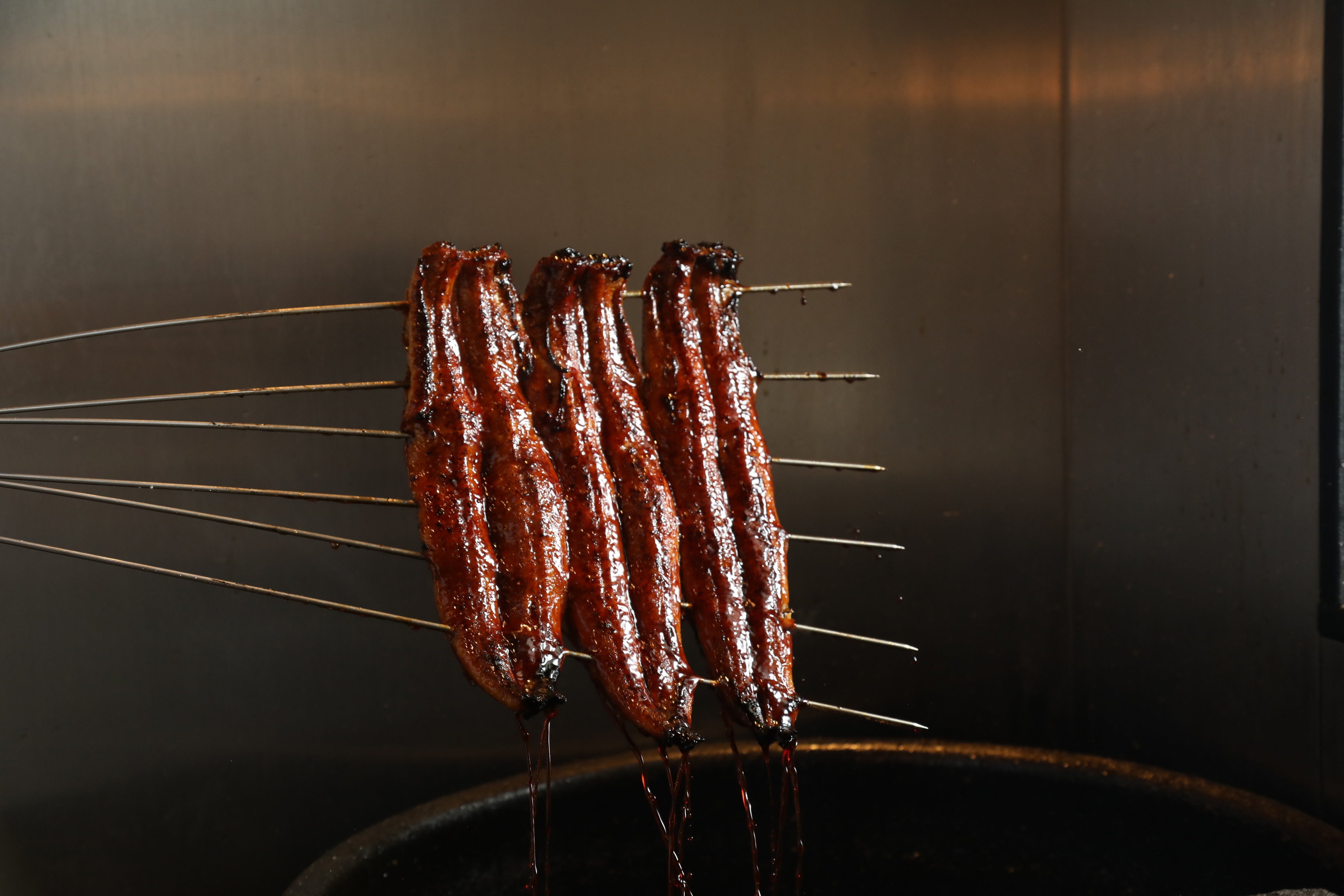 焼きたてのうなぎは、創業以来ずっと守り続けてきた「秘伝のたれ」にくぐらせます。長い歴史の中で磨きあげた自慢のたれと肉厚なうなぎの脂が絡み合うそのおいしさは格別です。
