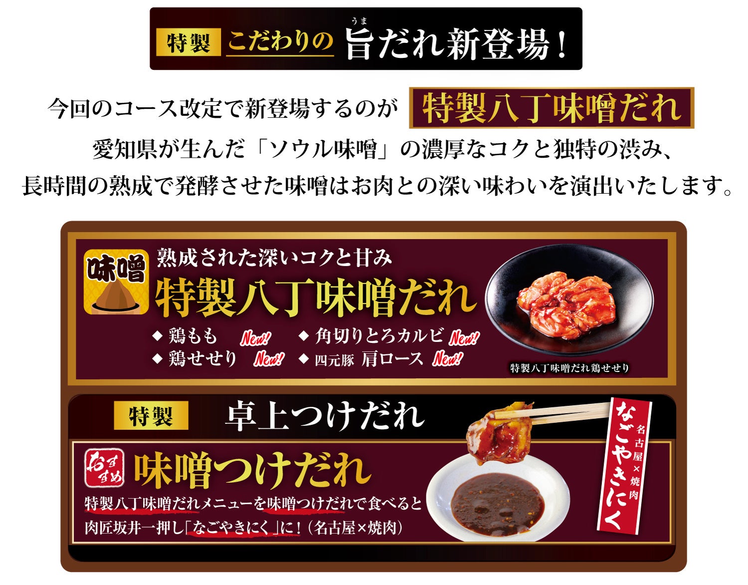 国産牛 焼肉食べ放題「肉匠坂井」では2026年5月20日(水)より食べ放題コースを刷新。3コースから4コースとなり、商品数も増加いたします。これに先立ちまして、マスコミ様・インスタグラマー様を対象としましたメディア試食会を5月15日(金)に肉匠坂井 名古屋岩塚店にて開催いたします。「2026年・夏の新メニュー」16品、新コースの「肉匠坂井スペシャルコース」から5品までお選びいただき、ご試食をお楽しみください。ご参加されるメディアの方はコチラ(応募フォーム)からお申込みをいただくか、下記URLからダウンロードできます「出席票」にご記入のほどご返信をいただけますと幸いでございます。お忙しい中お手数をおかけいたします。皆さまとお会いできることを楽しみにしております。