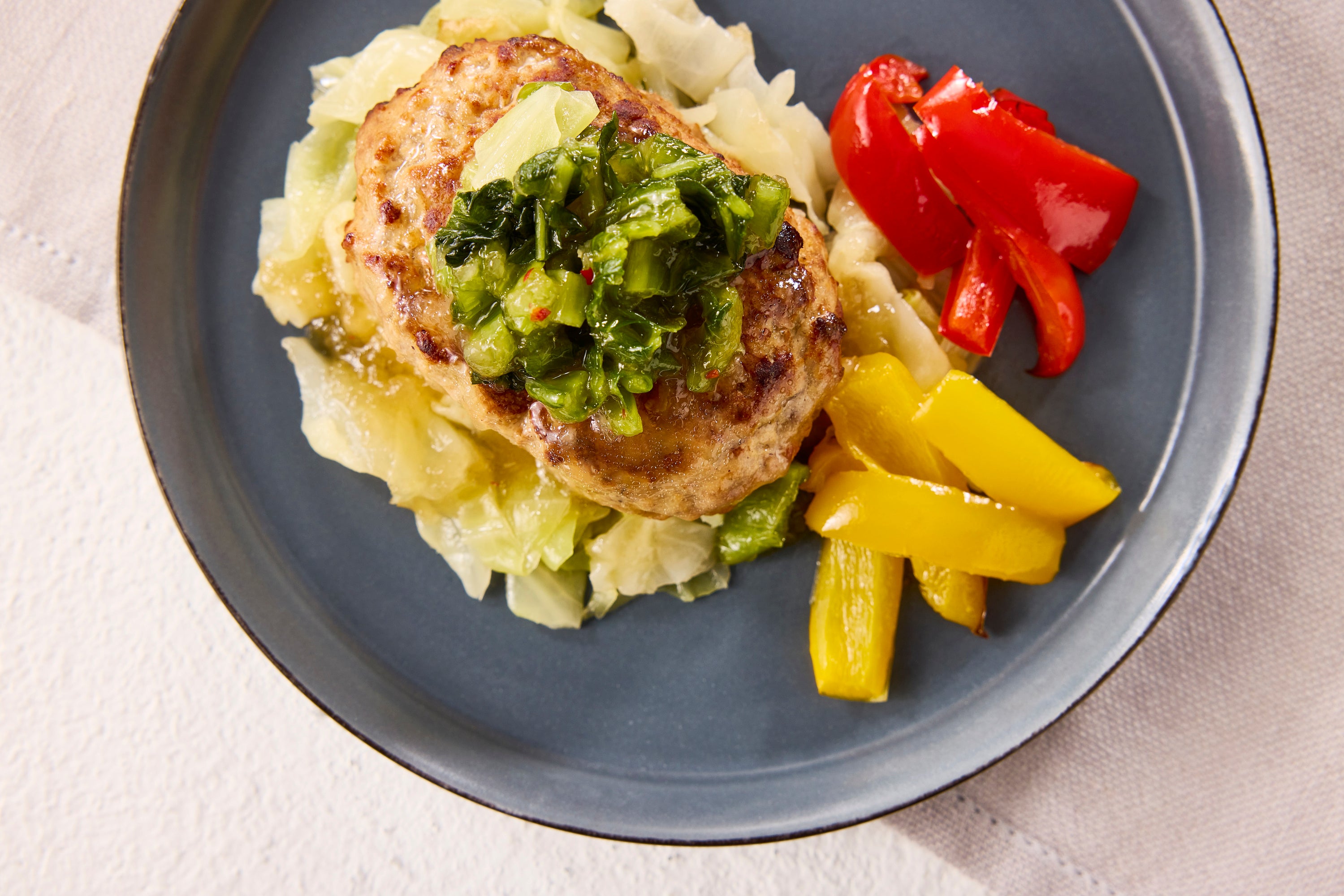 「少しずついろいろなものを楽しみたい」「一品でしっかり満足したい」というニーズに応え、企画者の地元、広島県ならではの食材・広島菜漬の美味しさを生かしたハンバーグ。ソースには、牡蠣だし醤油に、レモン果汁・大根おろし・だし・砂糖を加え、和風仕立てにしました。近年よく耳にする“タイパ”という価値観にも着目し、一品で野菜もお肉も味わえ、主食を足すだけで食事として完結する惣菜“タイパSOZAI”を目指しました。