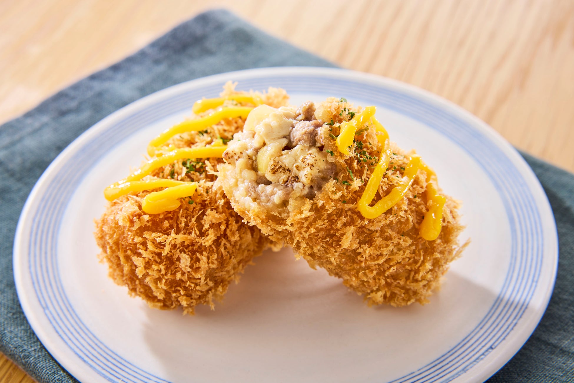 「こってり好きだけれど、重くなりすぎない食事を楽しみたい」というお客様の声に応えて企画しました。お肉の旨みと甘辛い味付けで満足感はありつつ、豆腐入りなのでライトな食べ応えのすき焼きコロッケ。まろやかな黄身ソースをかけて、ご飯のおかずになる味わいです。