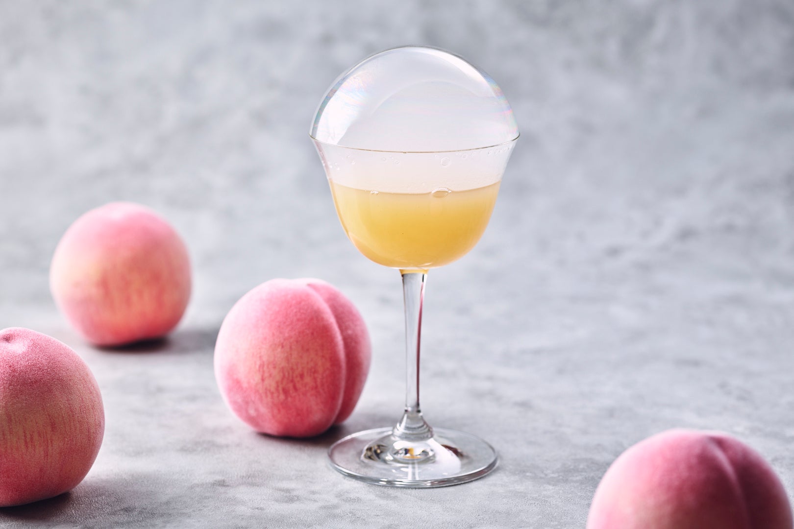 ピーチを使用したフローズンタイプのマルガリータと、バブルスモークの演出を加えたカクテルをご希望によりご用意(別途有料)。口に含んだ瞬間、果実のやさしい甘みとひんやりとした口あたりが広がる一杯、そしてスモークの香りとともに楽しむ印象的な一杯で、それぞれ異なる魅力をお愉しみいただけます。