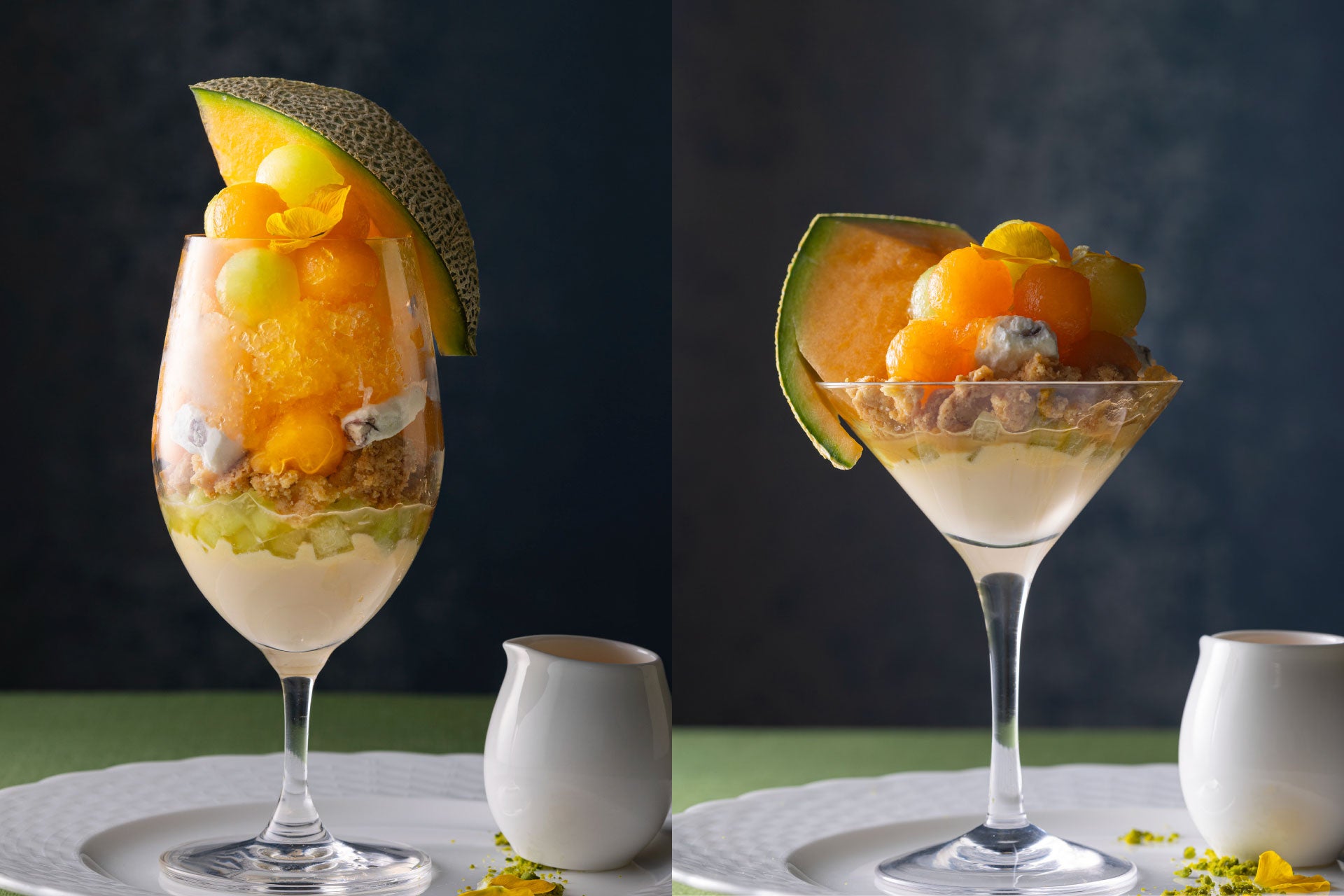 北海道産チーズを使用したメロンパフェ 2色の味わい(+2,000円~)