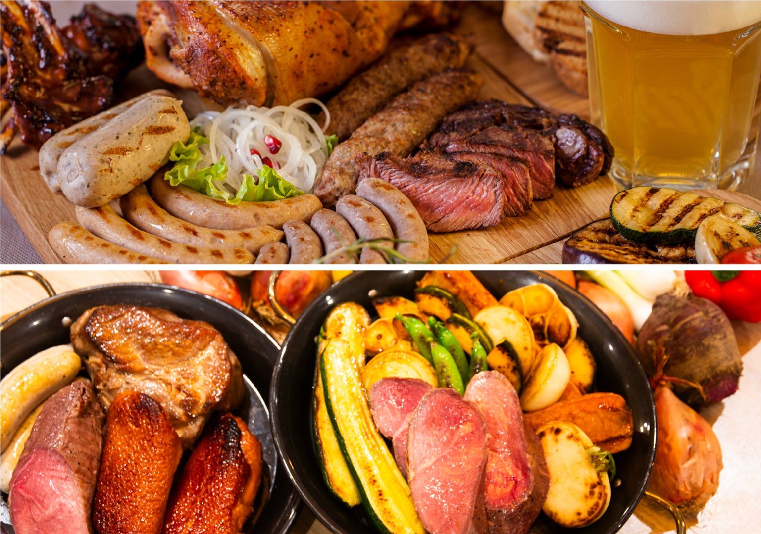 豚肩ロースグリルと合鴨ソテー / ソーセージとベーコンのカルボナーラピッツァ / ビーフカレー