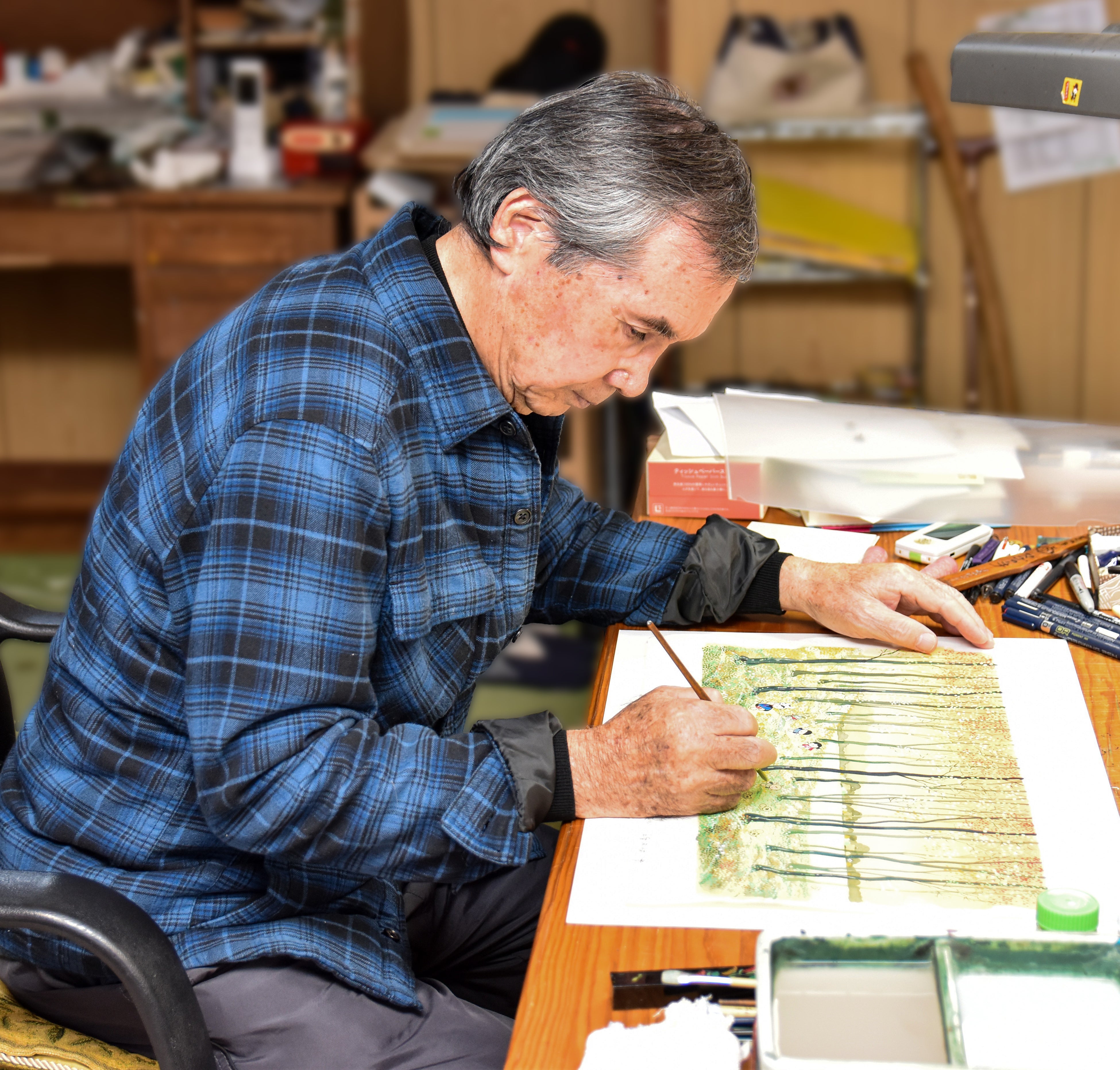 香川県高松市生まれ・埼玉県狭山市在住の童絵作家。日本各地の民話を訪ね歩き、「童絵」という独自の画風を確立。日本漫画家協会会員・香川県高松大学短期大学客員教授・狭山市観光大使・小江戸川越大使。過去にテレビ「まんが日本昔ばなし」の演出・策が・美術を務め、環境庁(現環境省)のイメージポスター制作なども手掛ける。