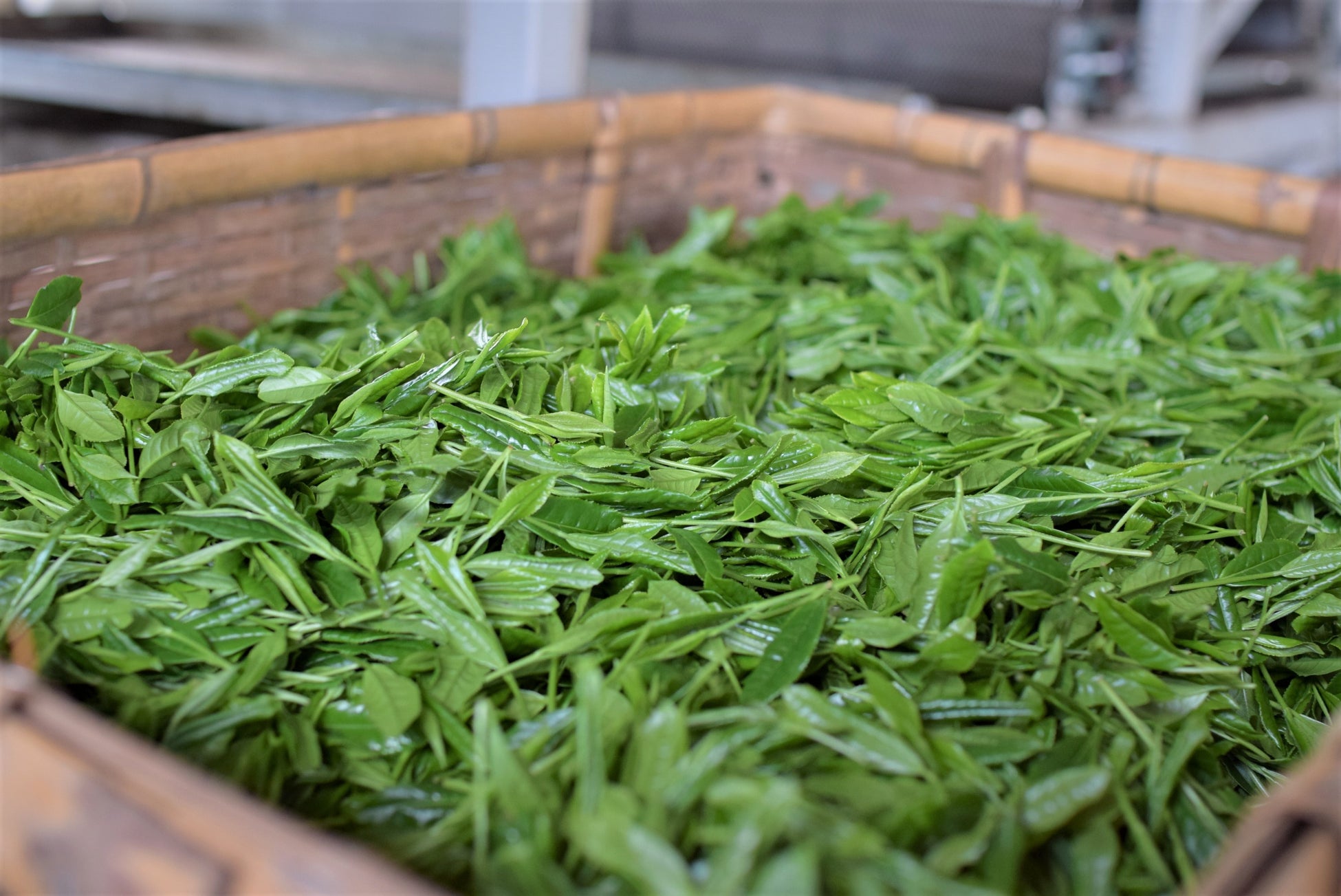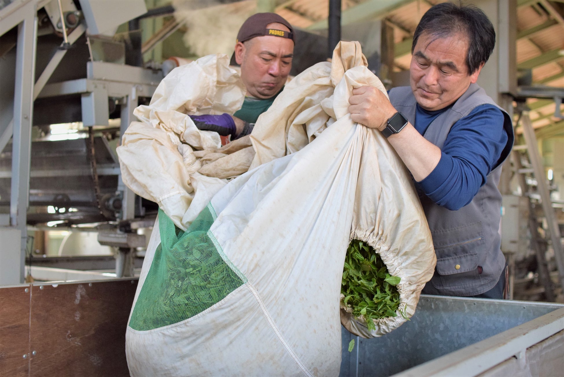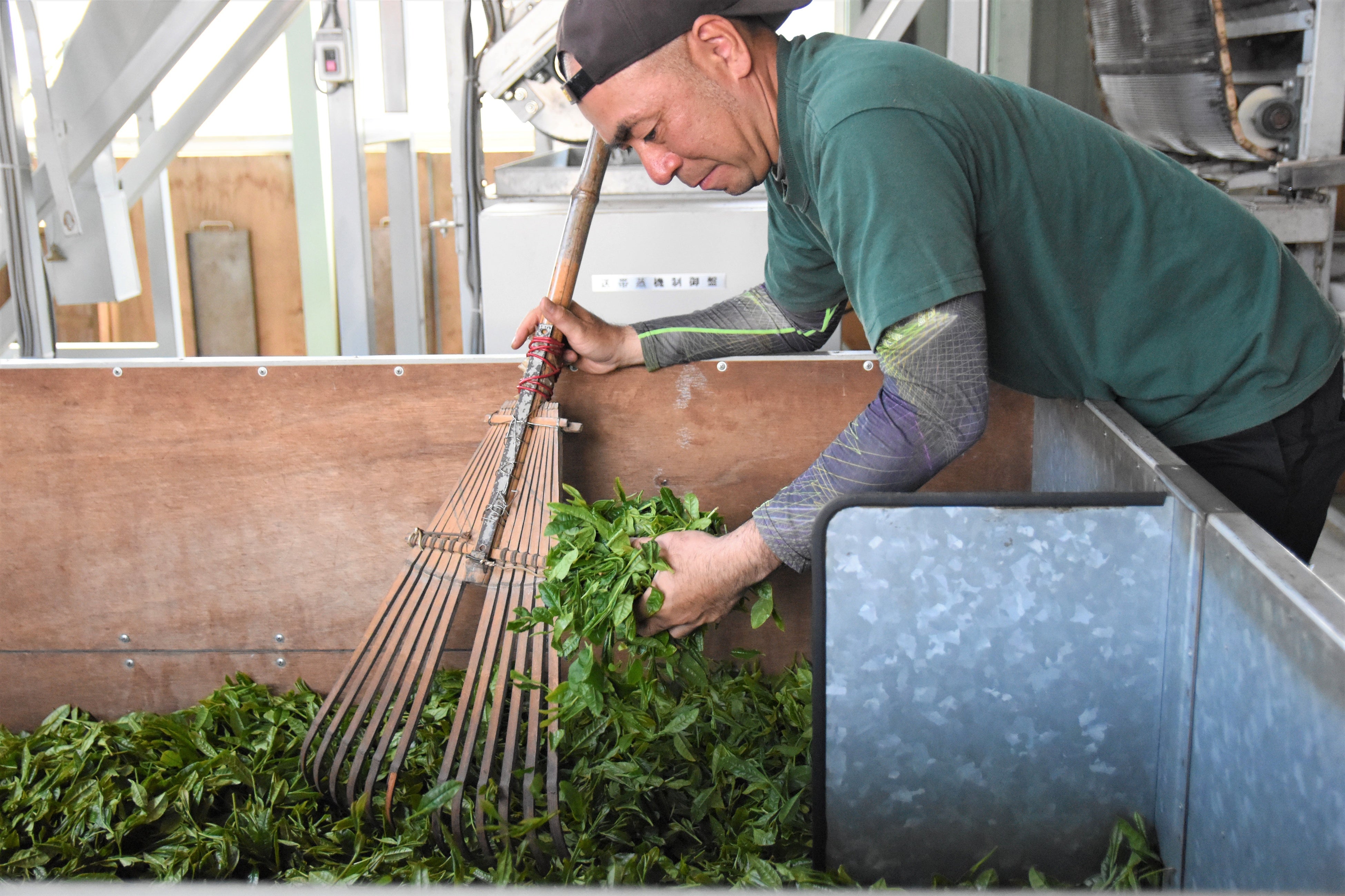 2026年4月29日(水曜日・昭和の日)実施する「狭山新茶まつり」。そのまつりでふるまう狭山新茶を4月26日(日曜日)に狭山市茶業協会と狭山市手揉み茶保存会の皆さんが、やまとう栗原園(狭山市水野342)で製造しました。当日は、10時から市内の各生産農家から持ち寄られた手摘みの生葉約350キログラムがやまとう栗原園に集められ、工場で荒茶に加工。その後、市内の茶商によって製茶加工され、40グラムずつ袋詰めしました。