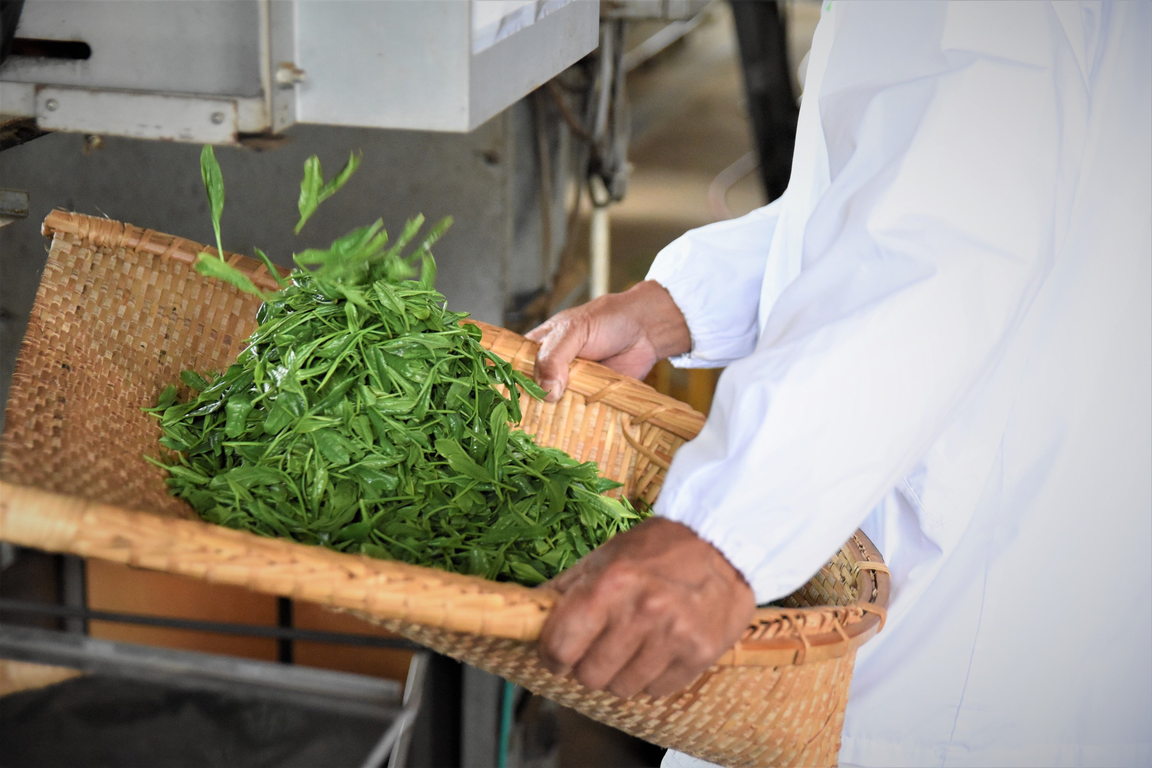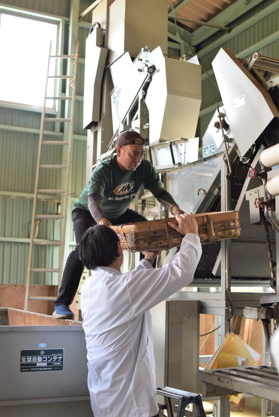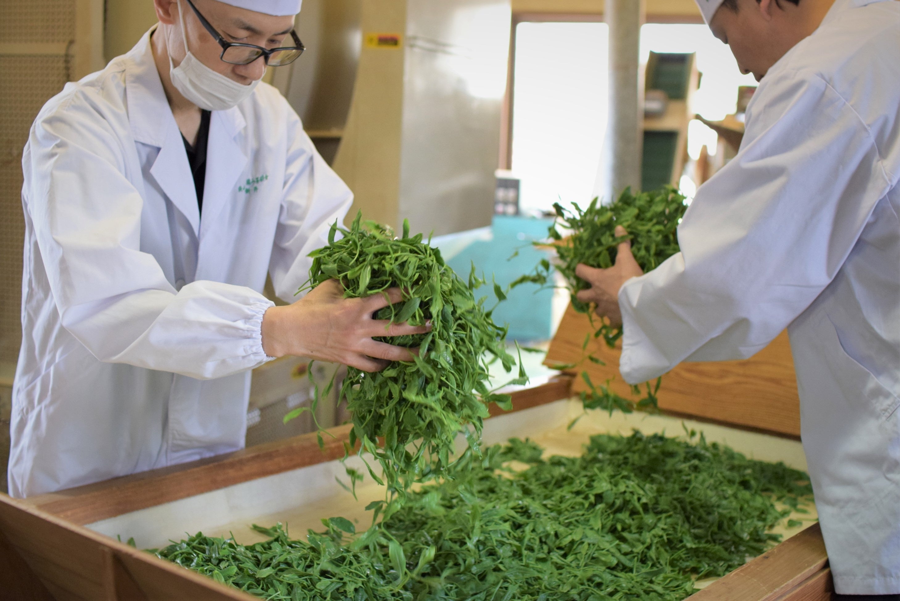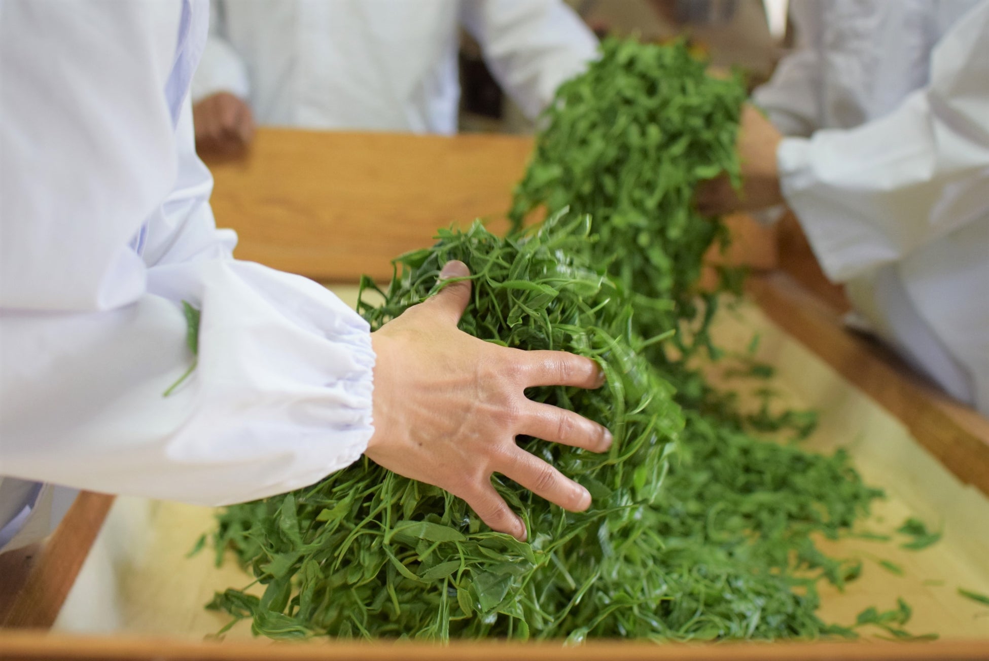 2026年4月29日(水曜日・昭和の日)実施する「狭山新茶まつり」。そのまつりでふるまう狭山新茶を4月26日(日曜日)に狭山市茶業協会と狭山市手揉み茶保存会の皆さんが、やまとう栗原園(狭山市水野342)で製造しました。当日は、10時から市内の各生産農家から持ち寄られた手摘みの生葉約350キログラムがやまとう栗原園に集められ、工場で荒茶に加工。その後、市内の茶商によって製茶加工され、40グラムずつ袋詰めしました。