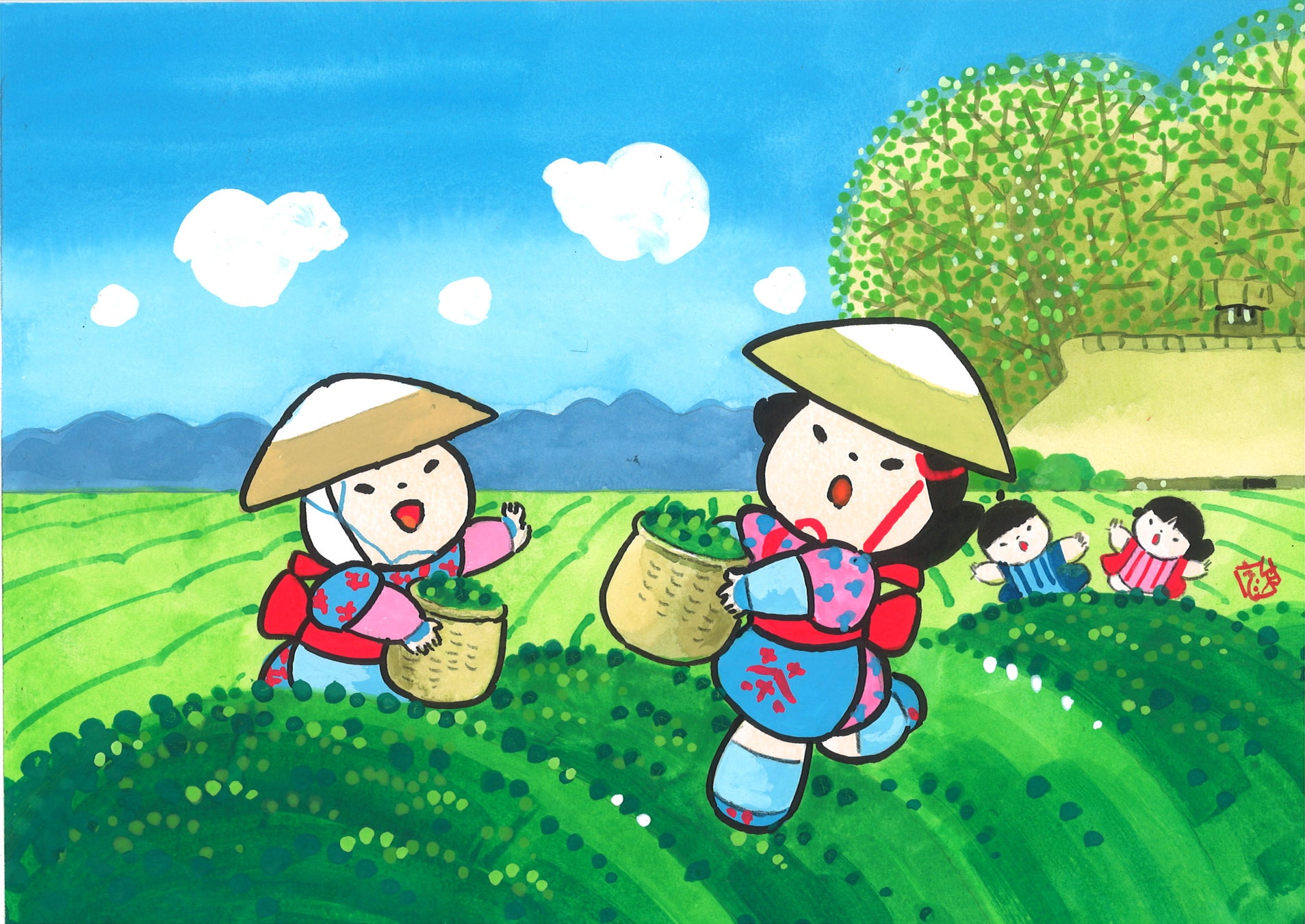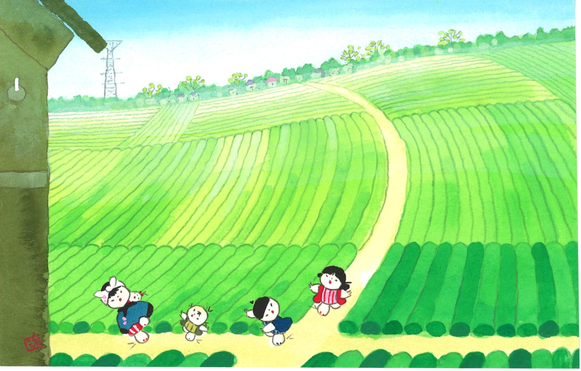 また、今回は狭山の新茶の季節をより楽しんでもらおうと、広報さやま2012年4月から2020年7月にかけて掲載していた「残しておきたい狭山の風景」から、お茶に関わる絵の原画も展示します。これは、市内在住の童絵作家である池原昭治さんが描いたもので、後世に伝えていきたい狭山市の風景100点からなるものです。