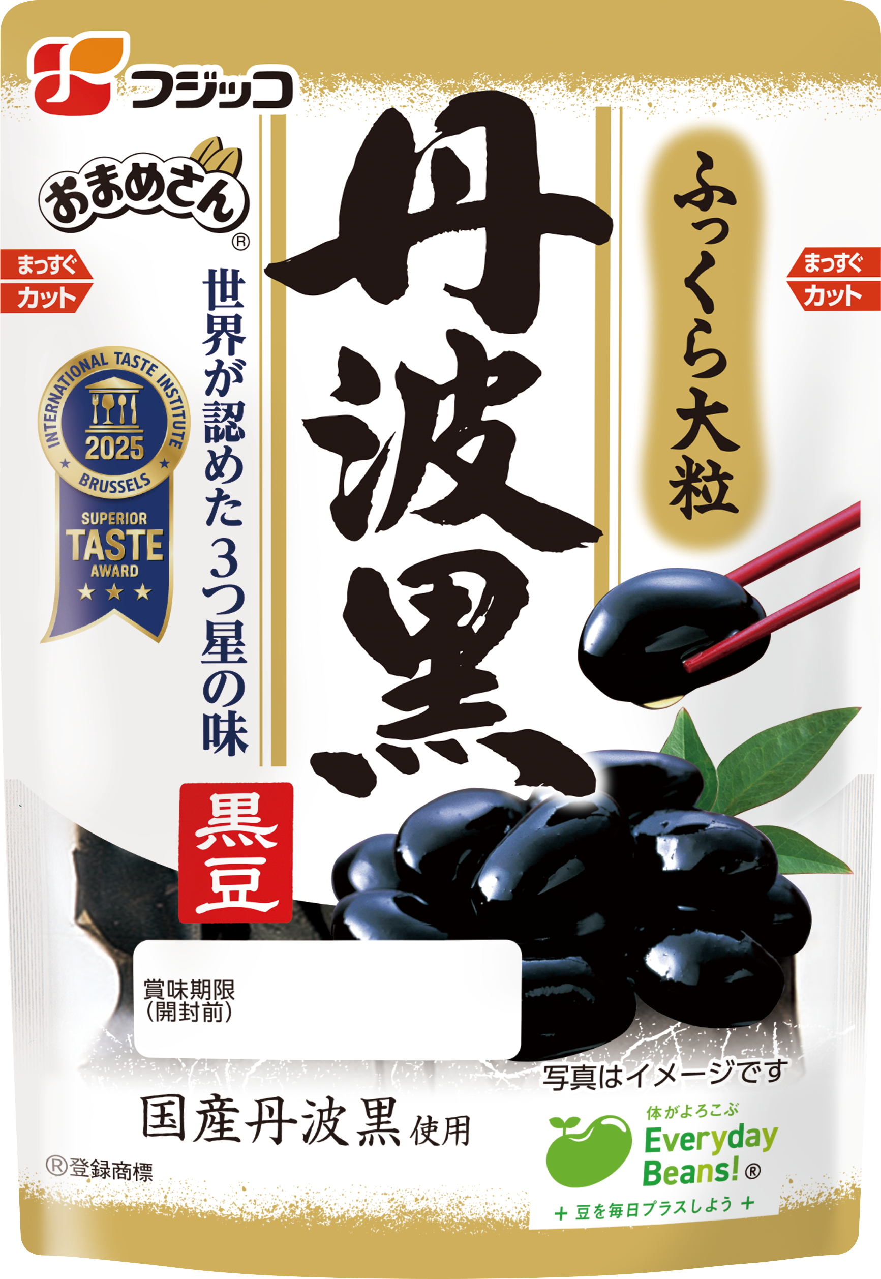 黒豆の中でも、とりわけ粒が大きく、ふっくらと柔らかく、食味が良いと言われる丹波黒黒豆。この黒豆を使用したフジッコの「おまめさん 丹波黒黒豆」は発売から40年を超えるロングセラー商品で親しまれています。
