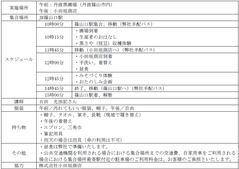 【2026年10月17日(土):黒さや(枝豆)収穫体験、みそづくり体験】
