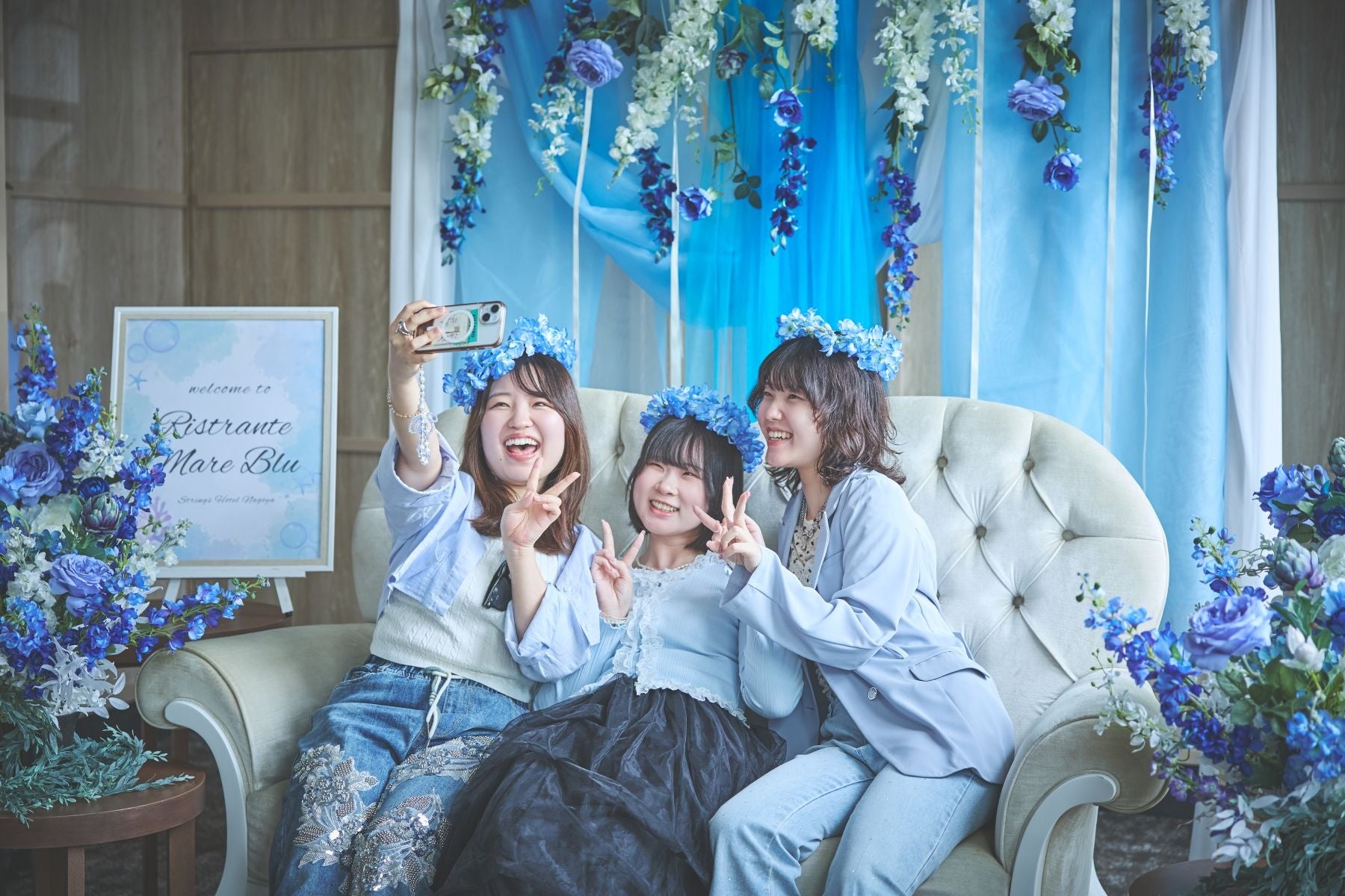 自由に撮影をお楽しみいただける青と白で彩られた「フォトブース」や、思い出を形に残す「プリントシール機」を会場内にご用意。プリントシール機はお食事中やお帰りの際などお好きなタイミングで撮影ができ、ご友人や恋人、ご家族との特別な瞬間を思い出の1枚としてお持ち帰りいただけます。また、公式インスタグラムのフォロー&投稿&ドレスコード「ブルー」(一部でも可)で素敵な景品が抽選で当たるフォトコンテストを実施いたしますので、是非ご応募ください。