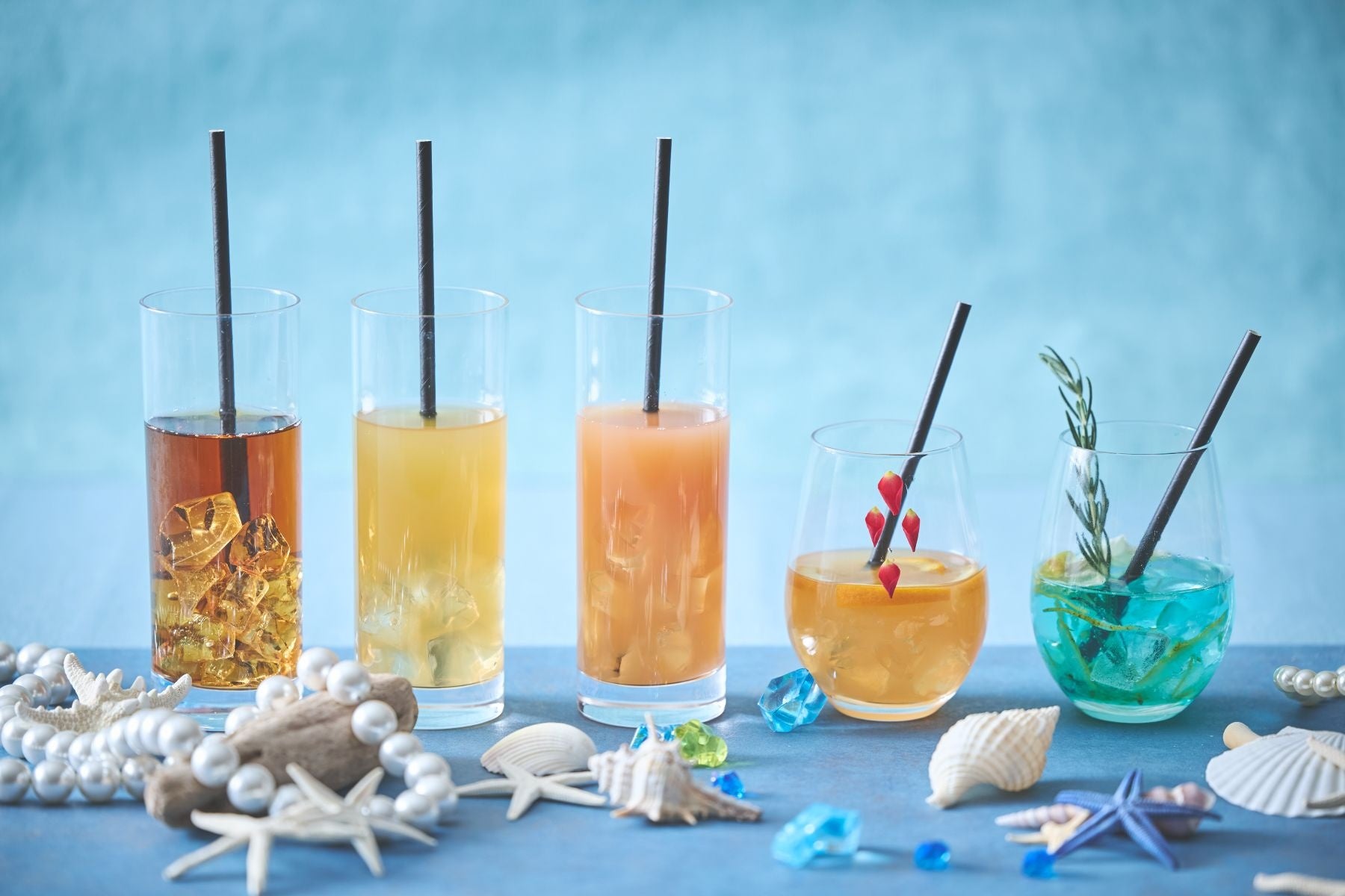 ウーロン茶、アップルジュース、ピンクグレープフルーツジュース、シーモクテル2種