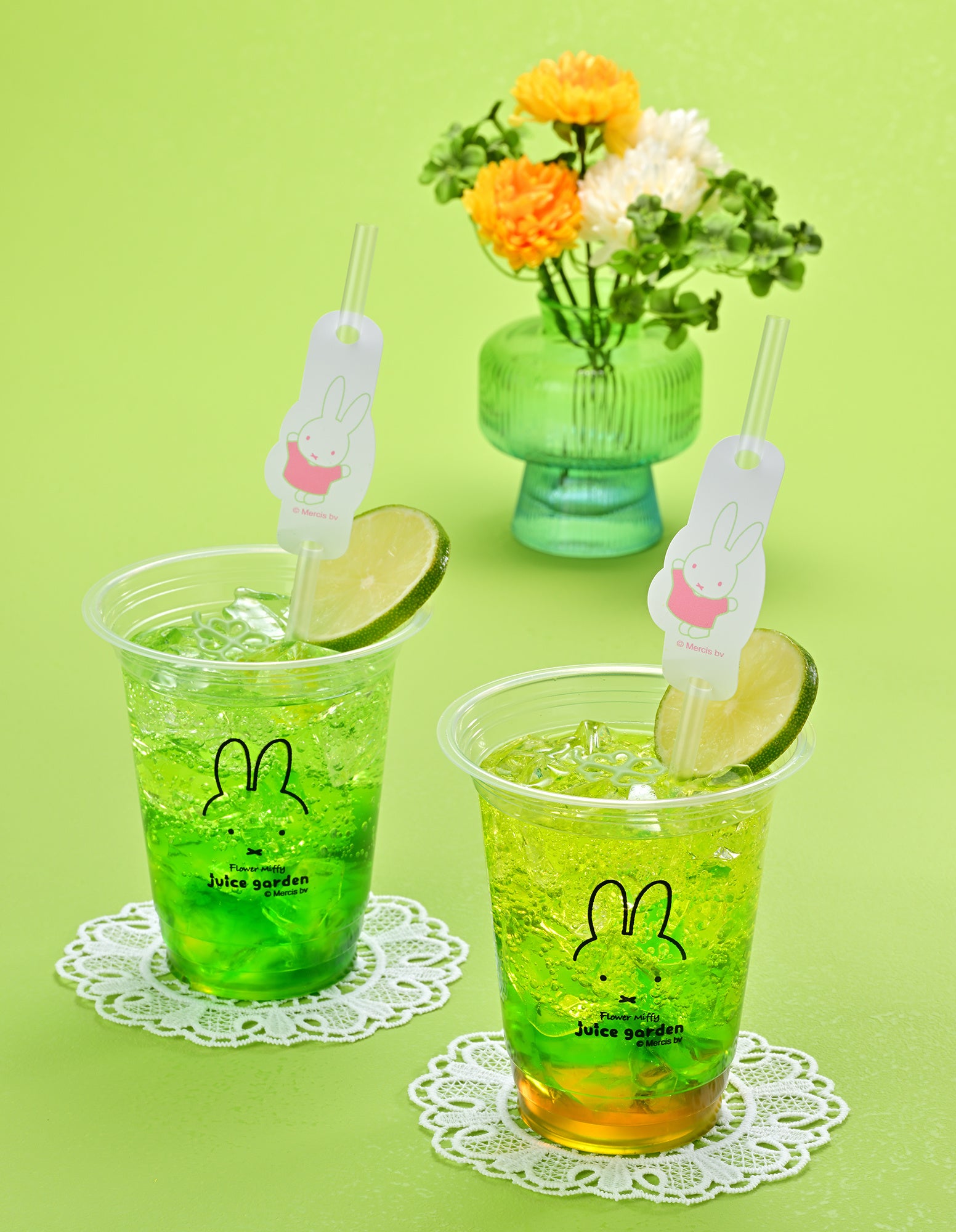 若葉の緑が一層深まるこの季節にぴったりの、フラワーミッフィー ジュースガーデンの期間限定ドリンクをぜひご賞味ください。