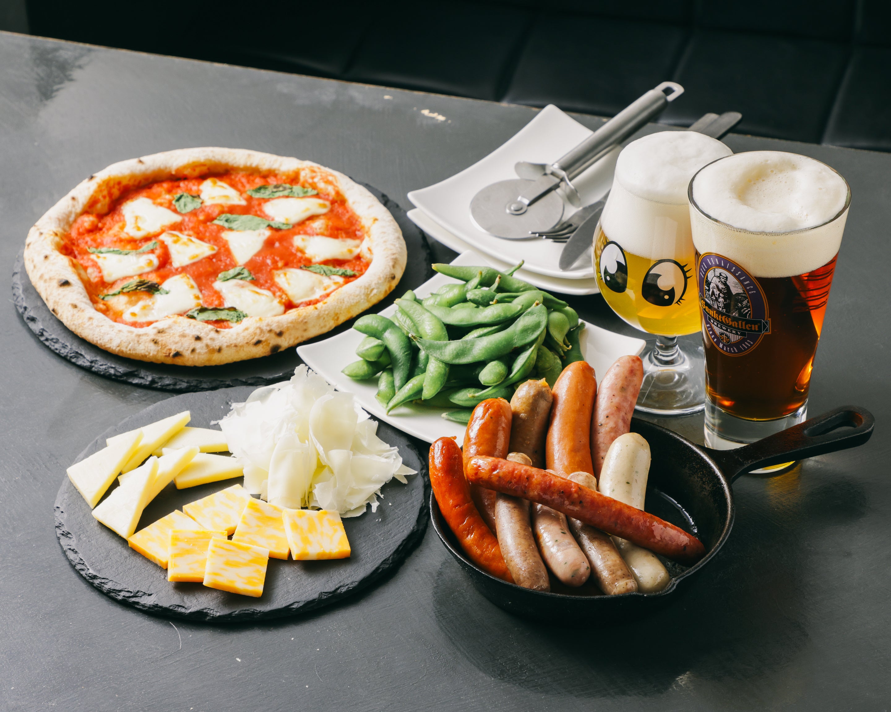 クラフトビール20種、石窯ピザ12種、世界のチーズ15種、ソーセージ10種が楽しめる店
