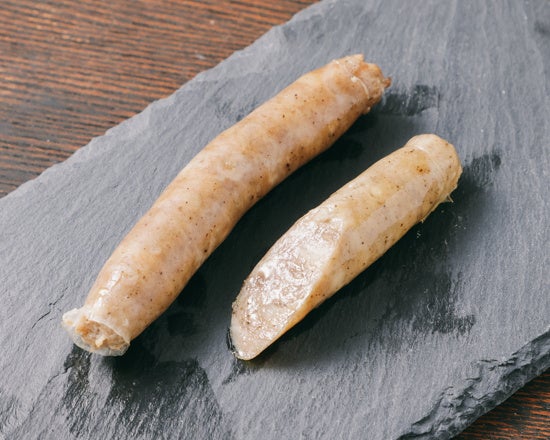 稀少な国産調査捕鯨ミンククジラの肉を使用したソーセージ。弾力ある食感。
