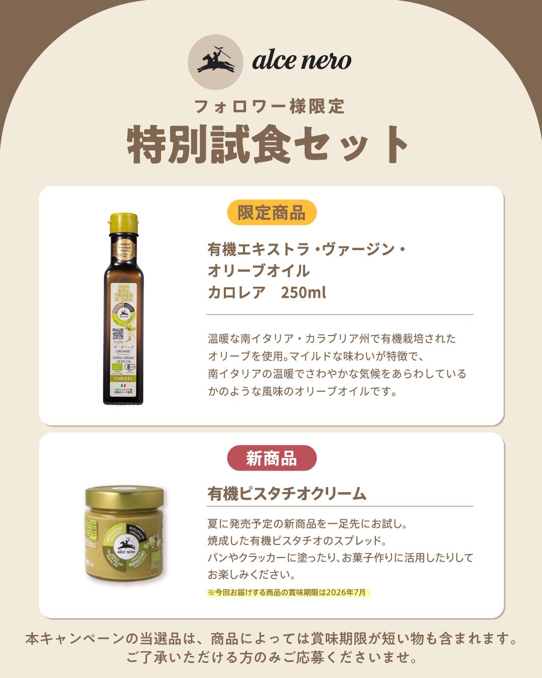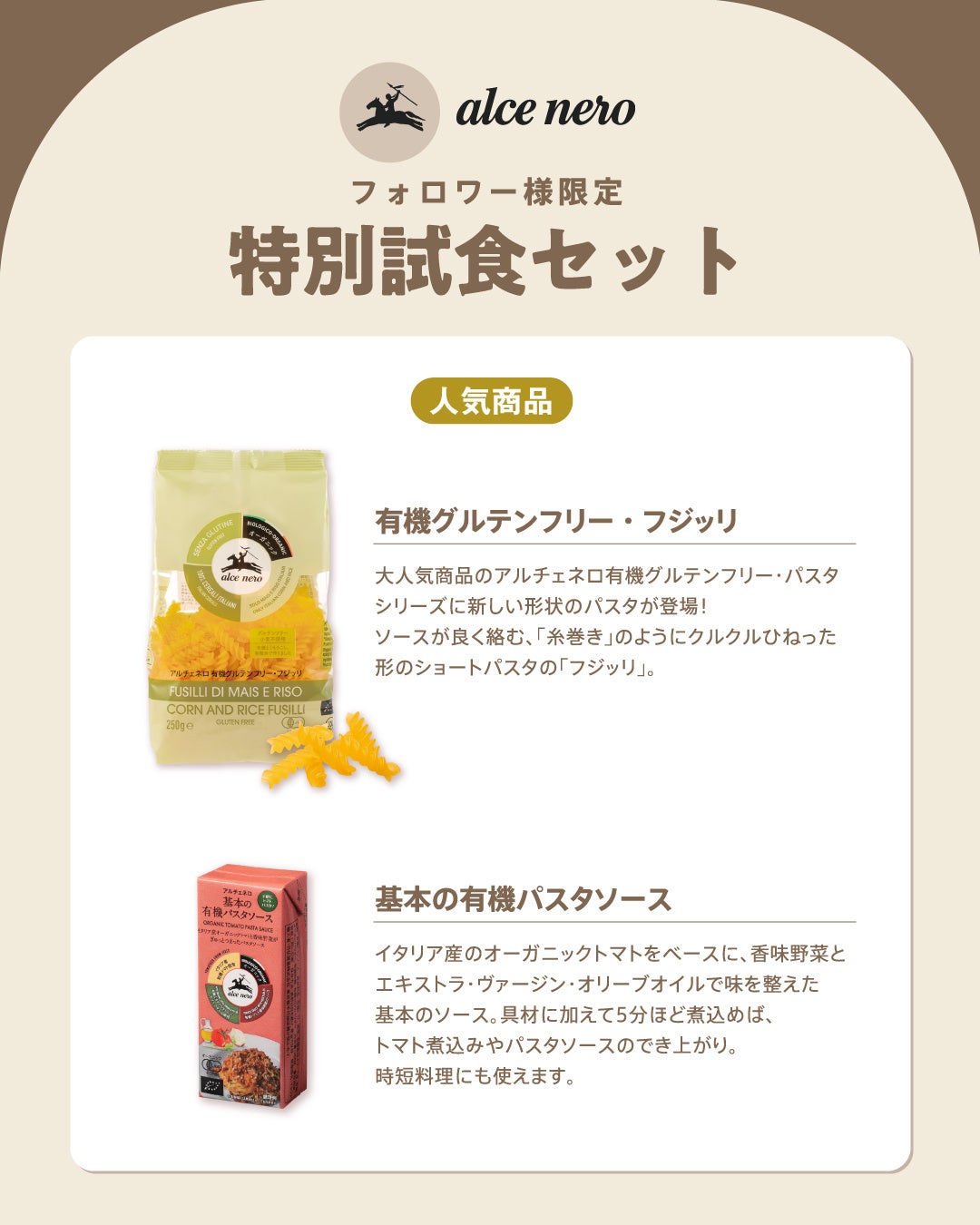 イタリアのオーガニック食材を取り扱う「Alce Nero(アルチェネロ)」は、2026年4月28日(火)~5月10日(日)の期間中Instagramキャンペーンを開催。当選者の100名様には、アルチェネロ特別試食セットがプレゼントされます。