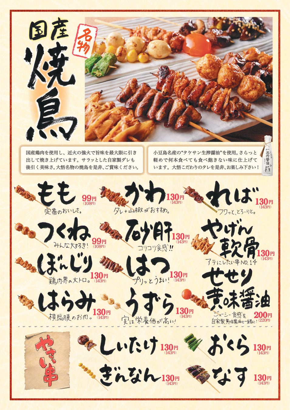焼鳥とあて巻き 居酒屋大悟 大和店