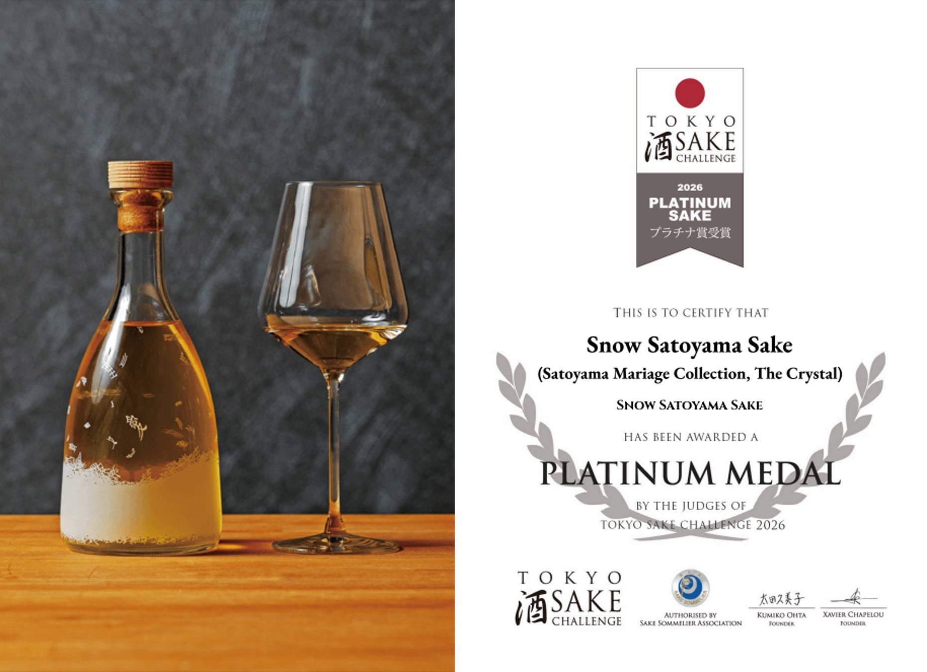 雪と里山醸造所(所在地:新潟県十日町市、代表:デュケット智美)は、イギリス・ロンドンに拠点を置く「酒ソムリエ協会(SSA)」主催の国際的な日本酒品評会「Tokyo酒チャレンジ2026」において、出品した「Snow Satoyama Sake – Satoyama Mariage Collection」シリーズ全3商品すべてが【プラチナ賞】【金賞】を受賞したことをお知らせいたします。