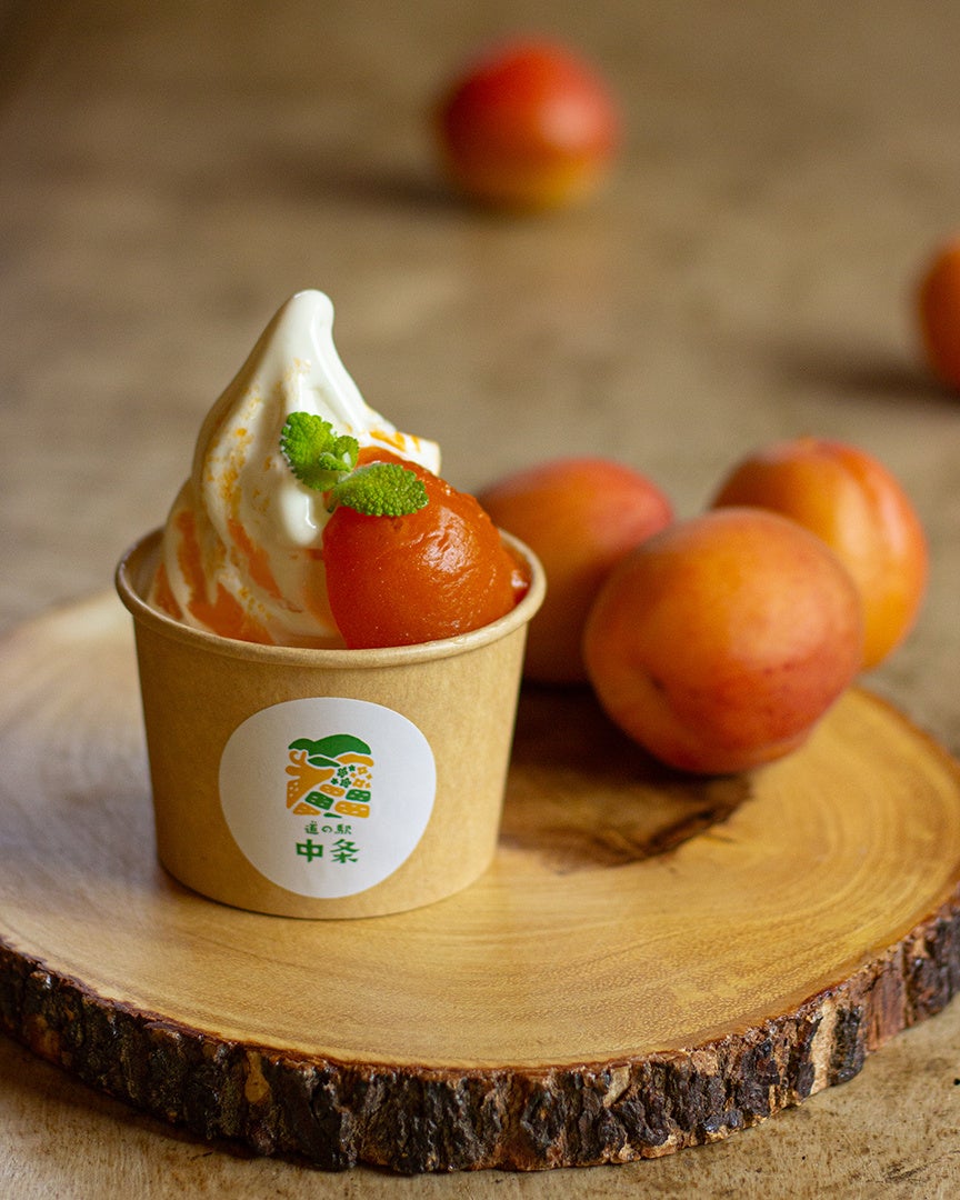 千曲市産あんずを使用したジャムを使用し、着色料は不使用。ごろっと入ったあんずの甘酸っぱさと濃厚なソフトクリームのコクが合わさった贅沢なスイーツです。