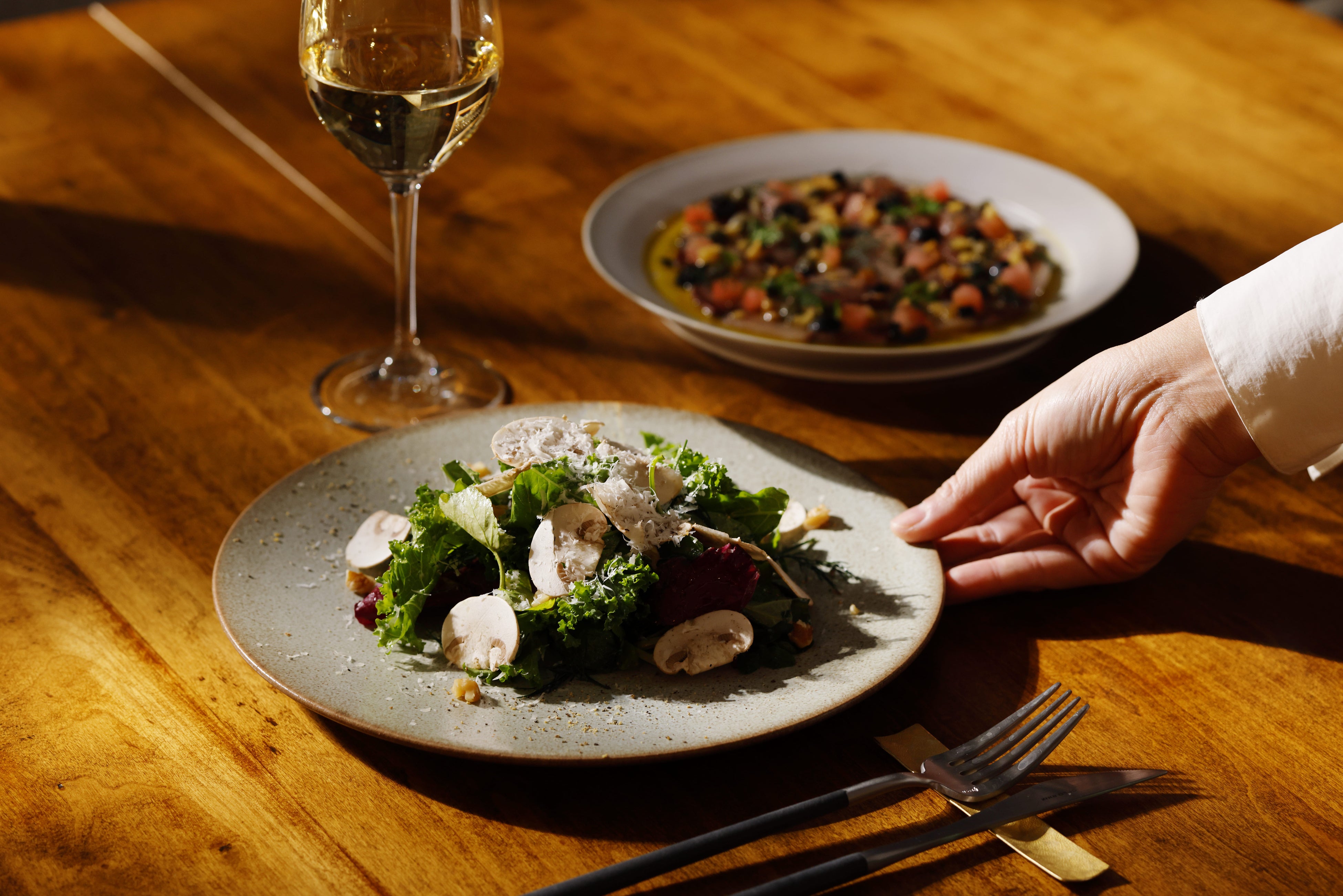 料理は、北陸の旬の魚介や地元食材の持ち味を引き出すシンプルな構成を基本に、前菜からパスタ、肉料理まで自由に組み合わせて楽しめるスタイル。ズワイガニや能登いしるを用いたパスタ、能登豚やグラスフェッドビーフのメインなど、素材の個性を感じられる味わいをご堪能いただけます。