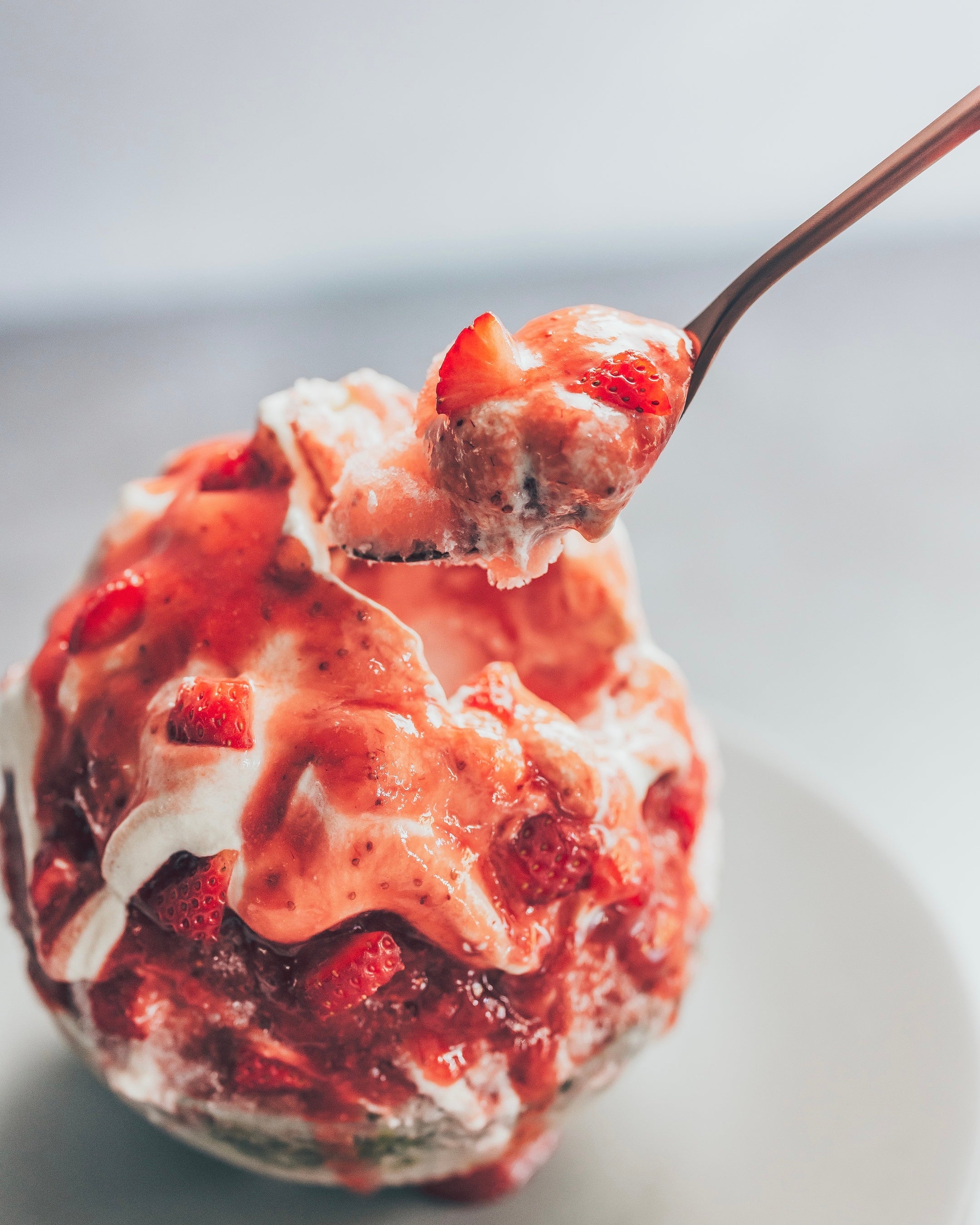 今季、& OIMO TOKYOが自信を持ってお届けするのは、見た目も愛らしい「苺」をイメージした贅沢なかき氷。一口食べれば、素材ひとつひとつへのこだわりが五感を通して伝わります。