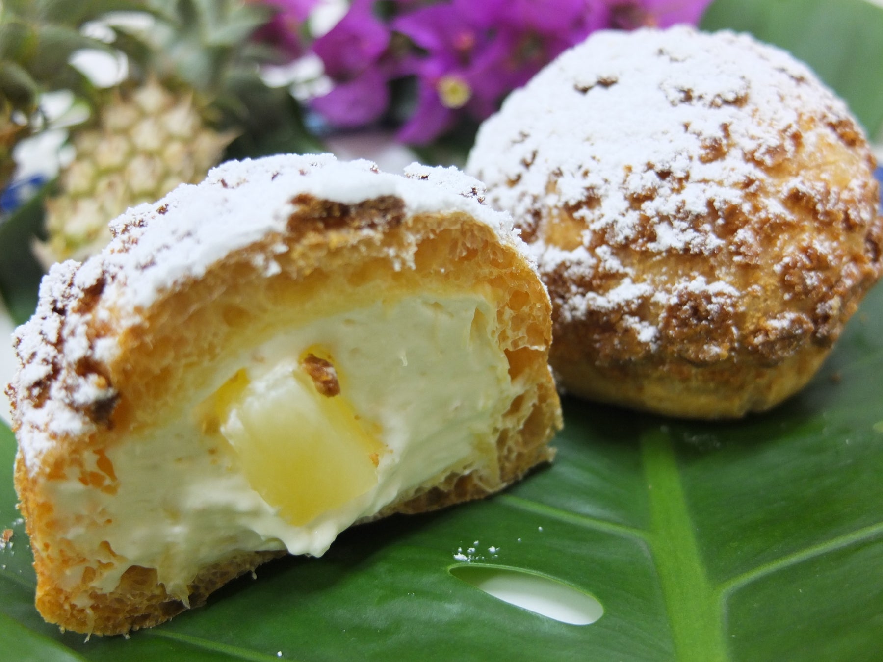 サクサクのシュー生地に、パイナップルの果肉がたっぷり入ったクリームがポイント。