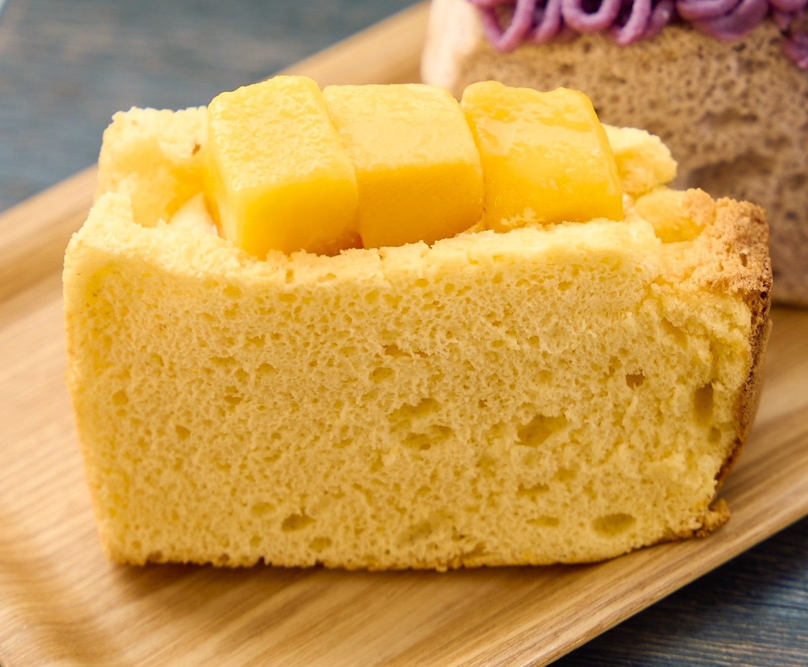 生地にもクリームにもトッピングにも、マンゴーづくしのシフォンケーキ。20年間変わらぬ味で愛されています。