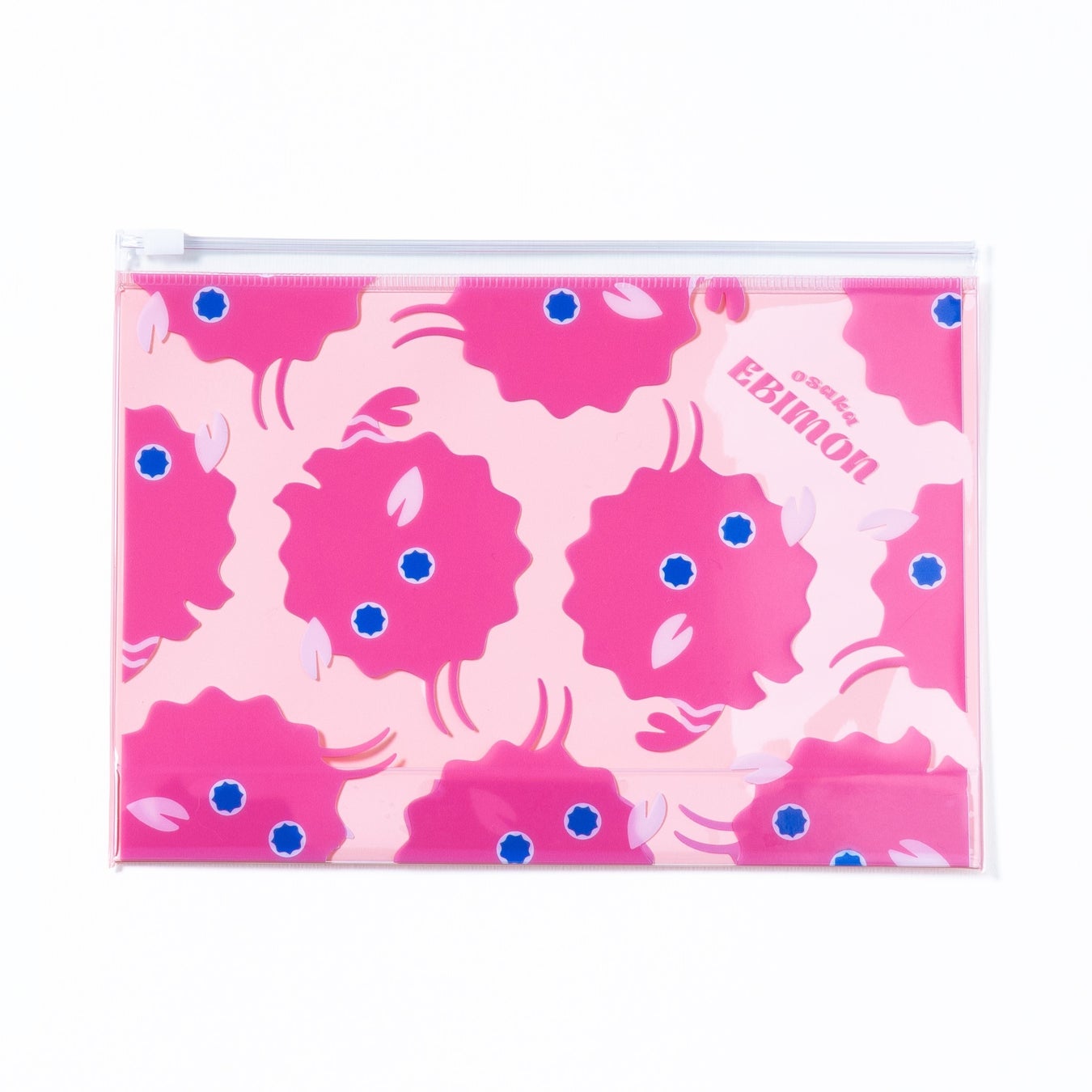 特徴:上部にジッパーがついた、中身が透けるデザインのビニル素材のポーチです。