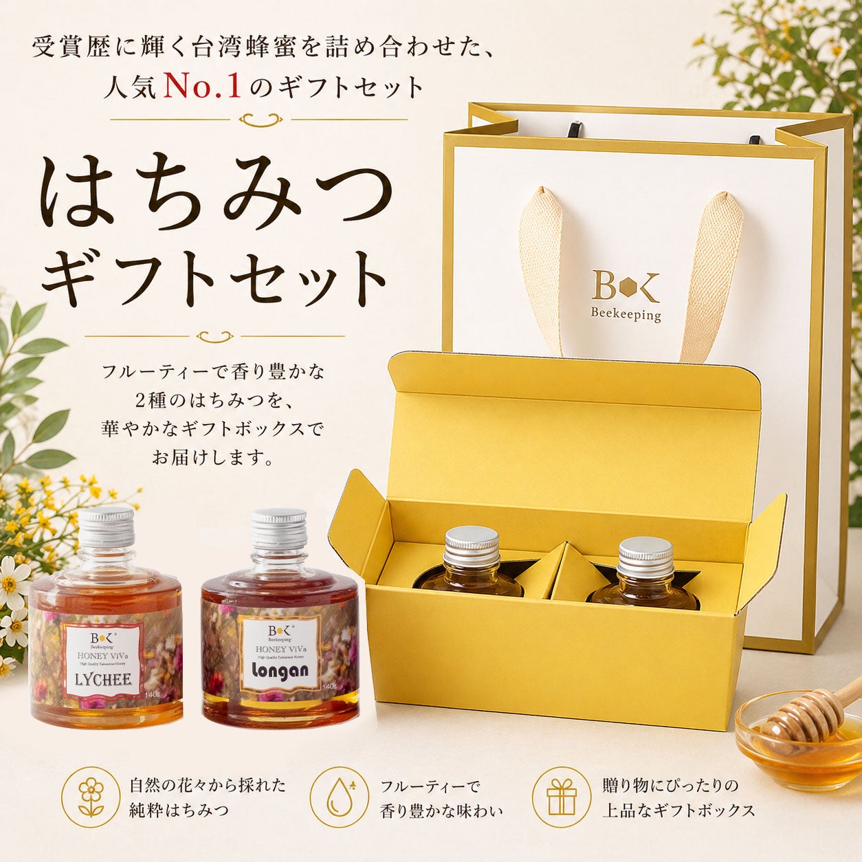自然由来のやさしい甘さを持つ蜂蜜は、日々の食卓に取り入れやすく、健康や美容を気遣う方への贈り物としても人気のアイテムです。