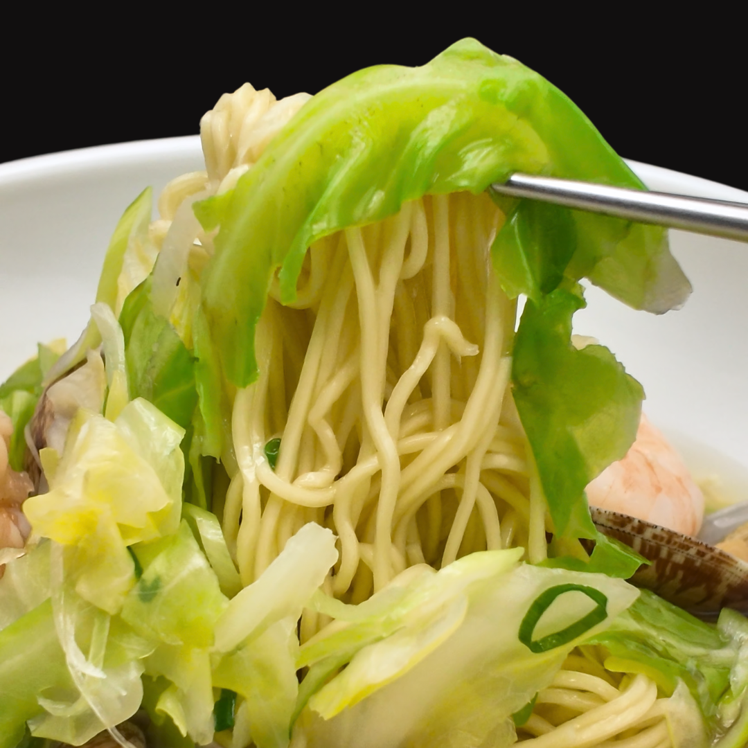 甘みが増した春キャベツと、旨味豊かな浅利を合わせた、季節感あふれる汁そば。