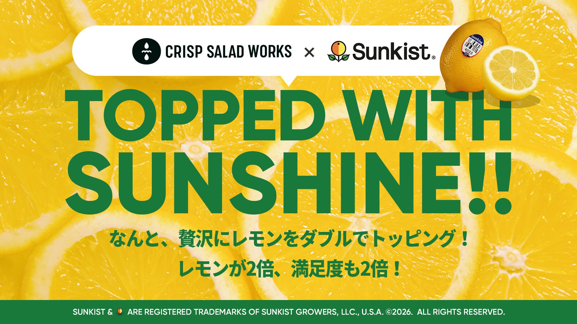 株式会社CRISP(本社:東京都港区、代表取締役:宮野 浩史)が運営する「クリスプサラダワークス」は、世界最大級の柑橘ブランド「サンキスト」を手がけるサンキスト・グロワーズ(本社:アメリカ カリフォルニア州)とコラボレーションし、「サンキストレモン」をトッピングとして主役にした限定メニューを販売します。