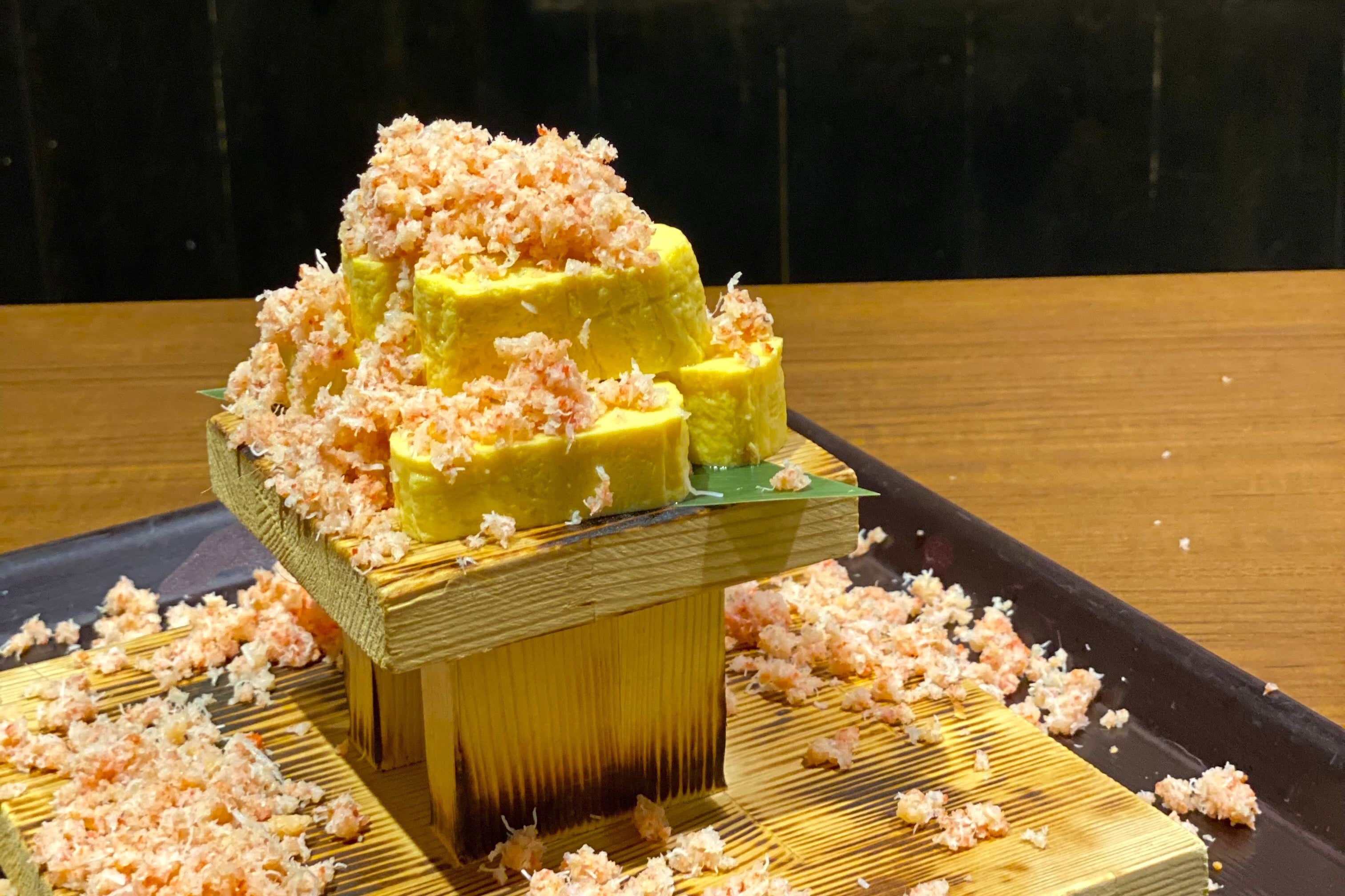 北海道産のかにを贅沢に使用し、ふんわりと仕上げただし巻き玉子にたっぷりとかけた一品。かにの旨味と出汁の風味が重なり、シンプルながら素材の良さをしっかり感じられる味わいです。