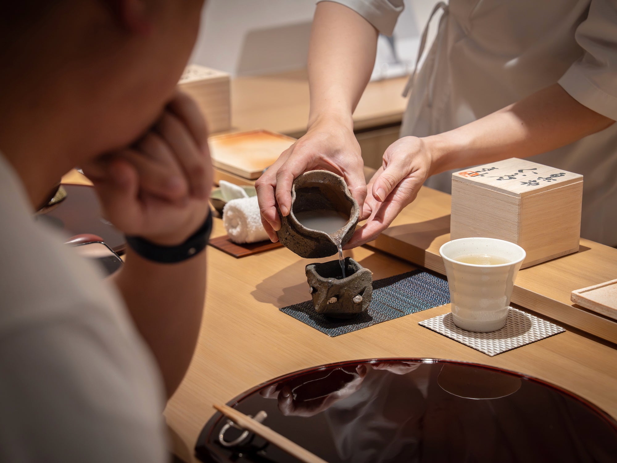 当日はTAKANOME代表・永金と陶芸家・道川省三氏本人が登壇し、お酒と作品それぞれへの思いをゲストの皆さまに直接お届けいたしました。「銀昇」による四季折々の食材を活かした料理とともに、酒・器・空間・人が一体となった五感の体験をお届けする、貴重な機会となりました。また、当日ご用意した道川氏の酒器はその場で複数点が購入されるなど、イベントは大盛況のうちに幕を閉じました。