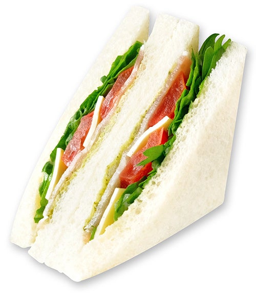 生ハムの旨みとフレッシュ野菜のみずみずしさを重ねた、軽やかな味わいのサンドイッチです。生ハム、泉州きくな、オニオンスライス、トマトに、まろやかなモッツァレラ入りスライスチーズを合わせ、バジルソースで風味豊かに仕上げました。