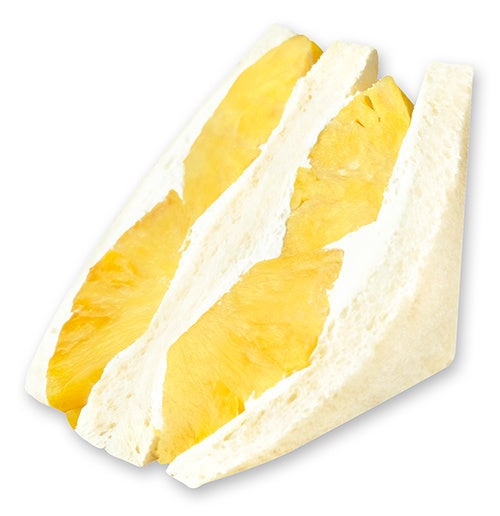 ジューシーな旬のパイナップルを贅沢に使用した、食べ応えのあるフルーツサンドです。フレッシュのパイナップルを1/6カット分たっぷりとサンドし、生クリームと合わせました。ひとくち頬張れば、あふれる果汁とクリームのまろやかさが広がる、満足感のある一品に仕上げています。