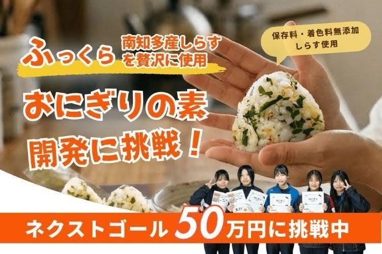 「南知多の魅力を、次世代の手で全国へ届ける」という本プロジェクトは、現在CAMPFIREにてクラウドファンディングを実施中です。 しらす干しおにぎりの素の商品化に向けて、企画からパッケージデザイン、地域でのちらしの配布やSNS発信といった販売促進に至るまで、生徒たちとマル伊商店がひとつのチームとなって取り組んでいます。