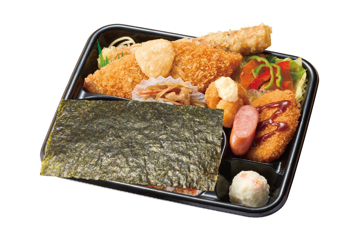 のり弁当で定番のおかず、白身フライとちくわ磯辺をプラスし、どのおかずから食べるか迷ってしまうほどのバラエティ豊かなお弁当です。