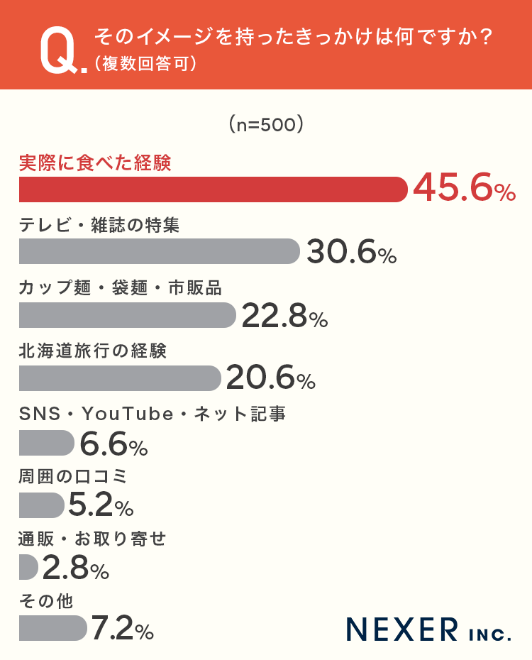株式会社NEXER・北海道ラーメンの認知・イメージと食経験に関する調査