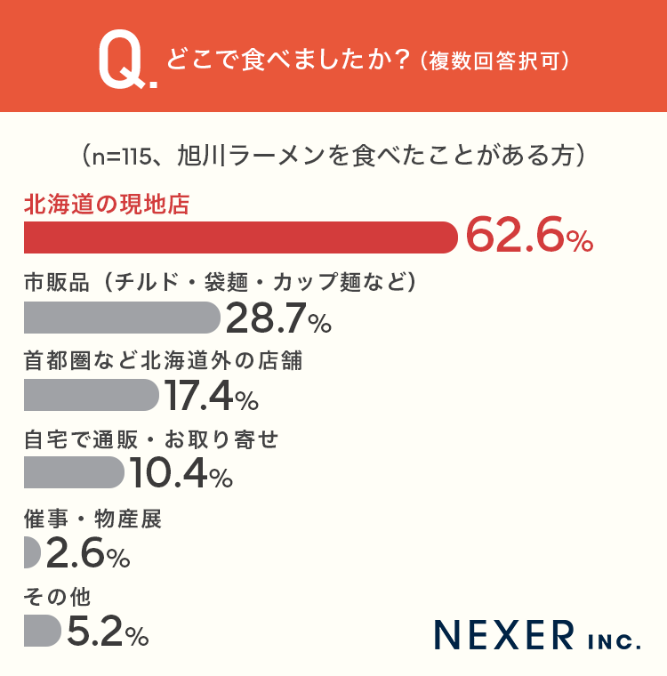 旭川ラーメンは、現地で食べた経験がある人が圧倒的に多い結果となりました。