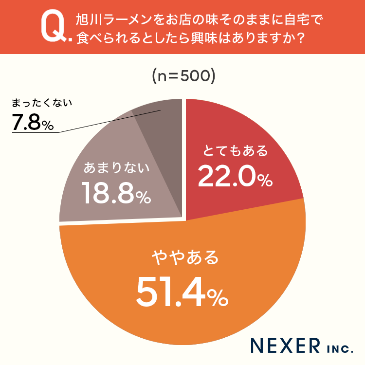 旭川ラーメンを食べたことがない人が約8割にのぼるにもかかわらず、7割以上が自宅で本格的な味を試してみたいと感じているようです。