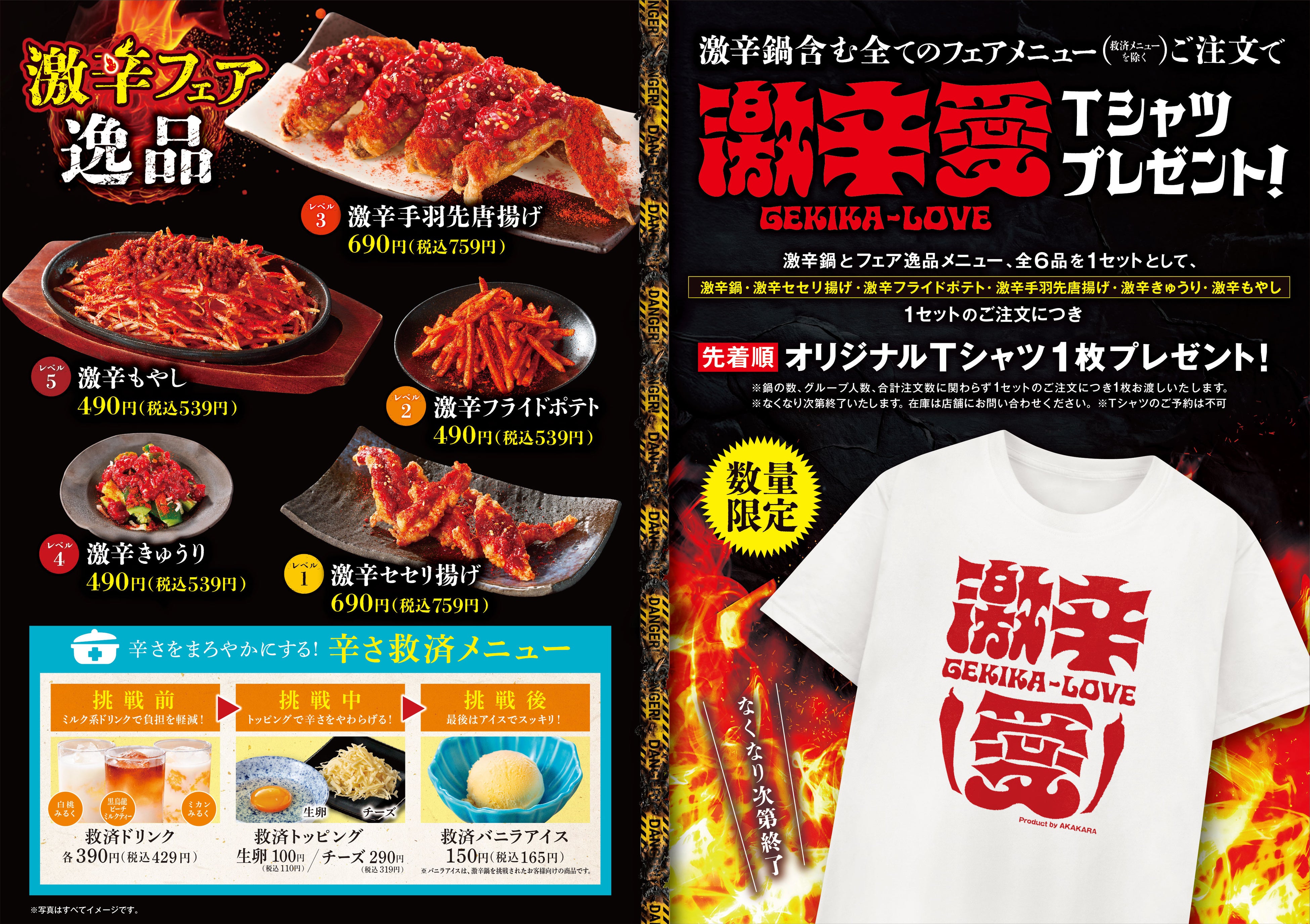 激辛鍋を含む全てのフェアメニュー注文で「激辛愛Tシャツ」をプレゼント!