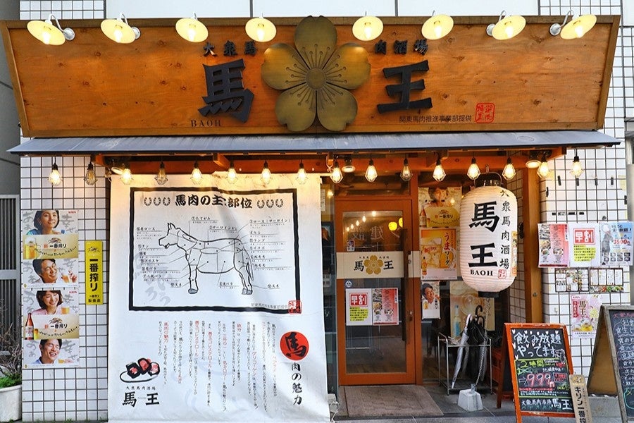 大衆馬肉酒場 馬王 堺筋本町店は、大阪・堺筋本町エリアに位置し、鹿児島県を中心に仕入れる純国産馬肉を使用した料理を提供する馬肉専門の居酒屋です。