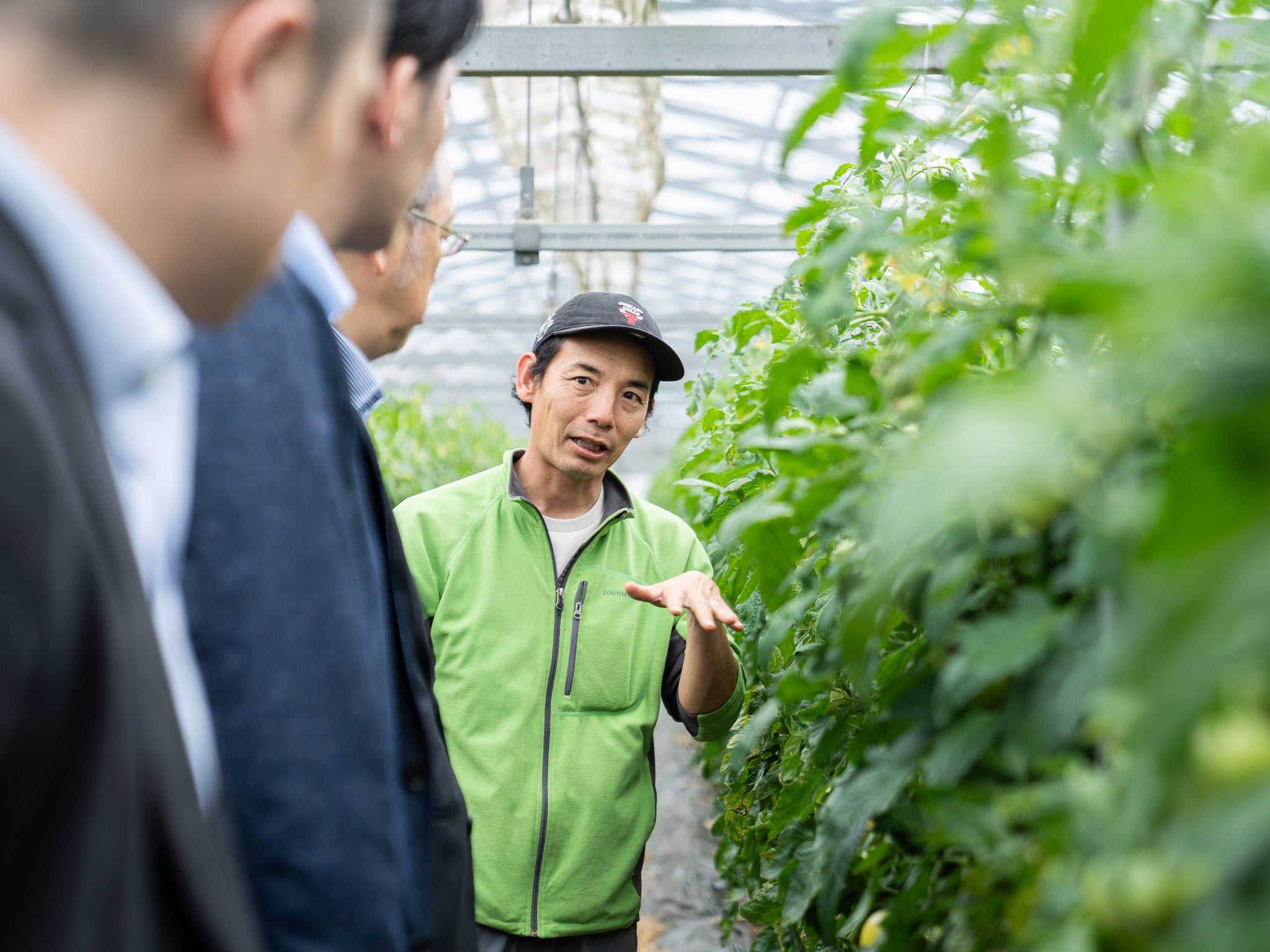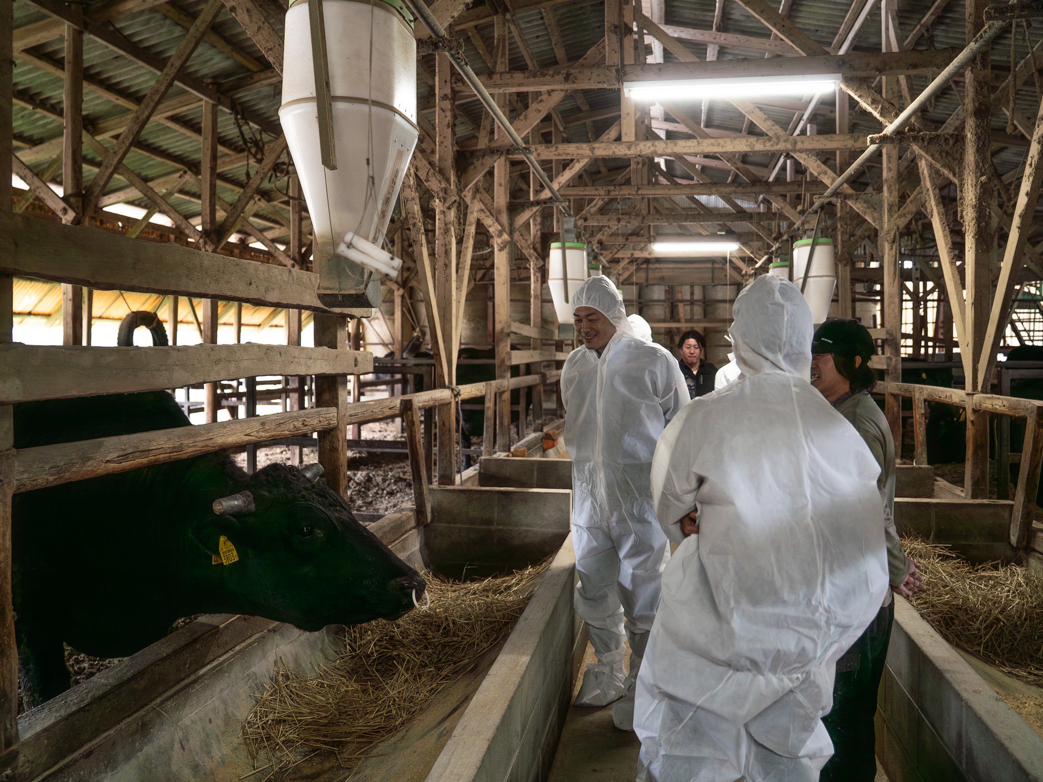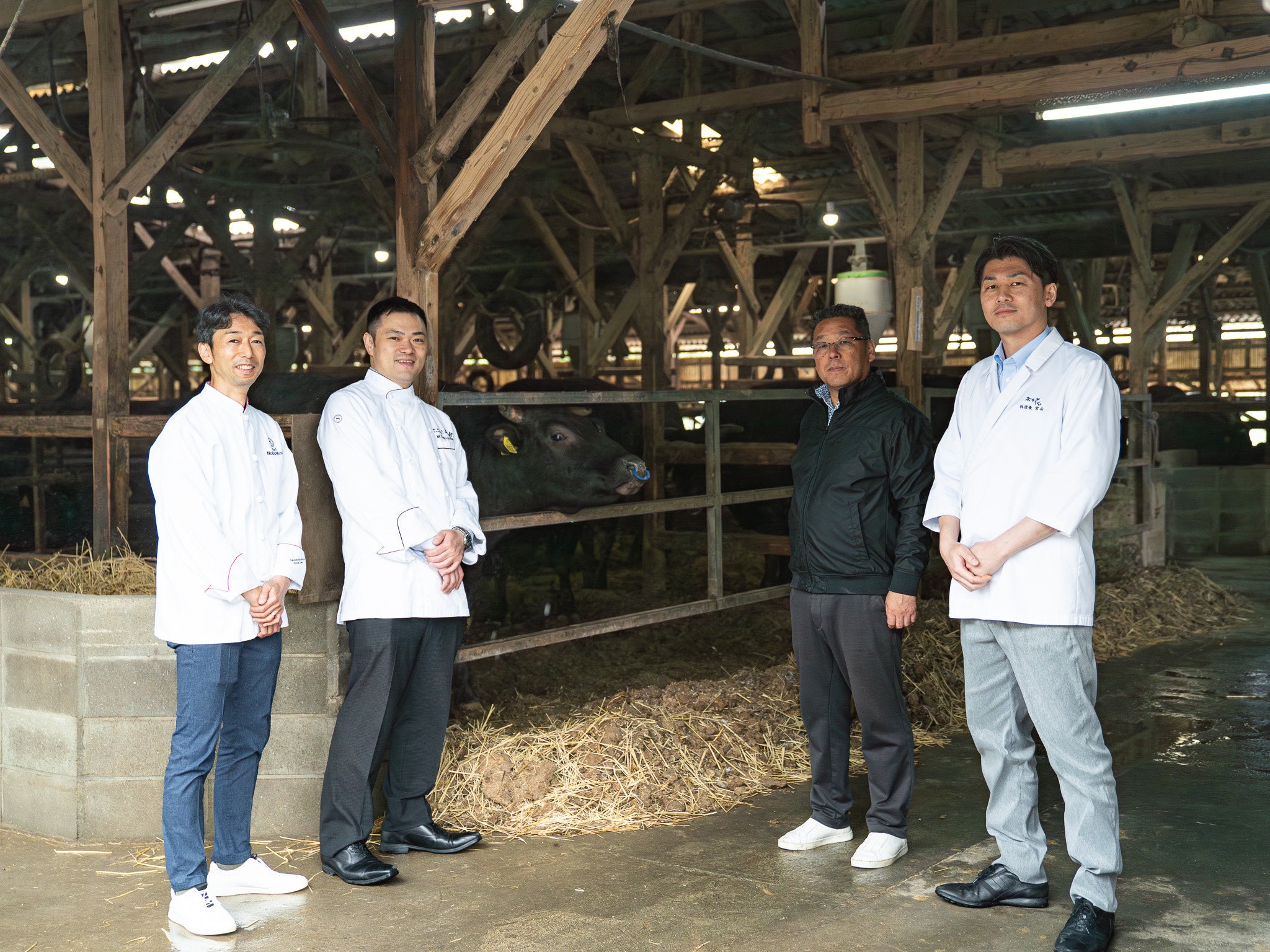 日本料理・中国料理・鉄板焼のシェフに視察いただきました。(上:佐賀牛牛舎、下:とまと圃場)