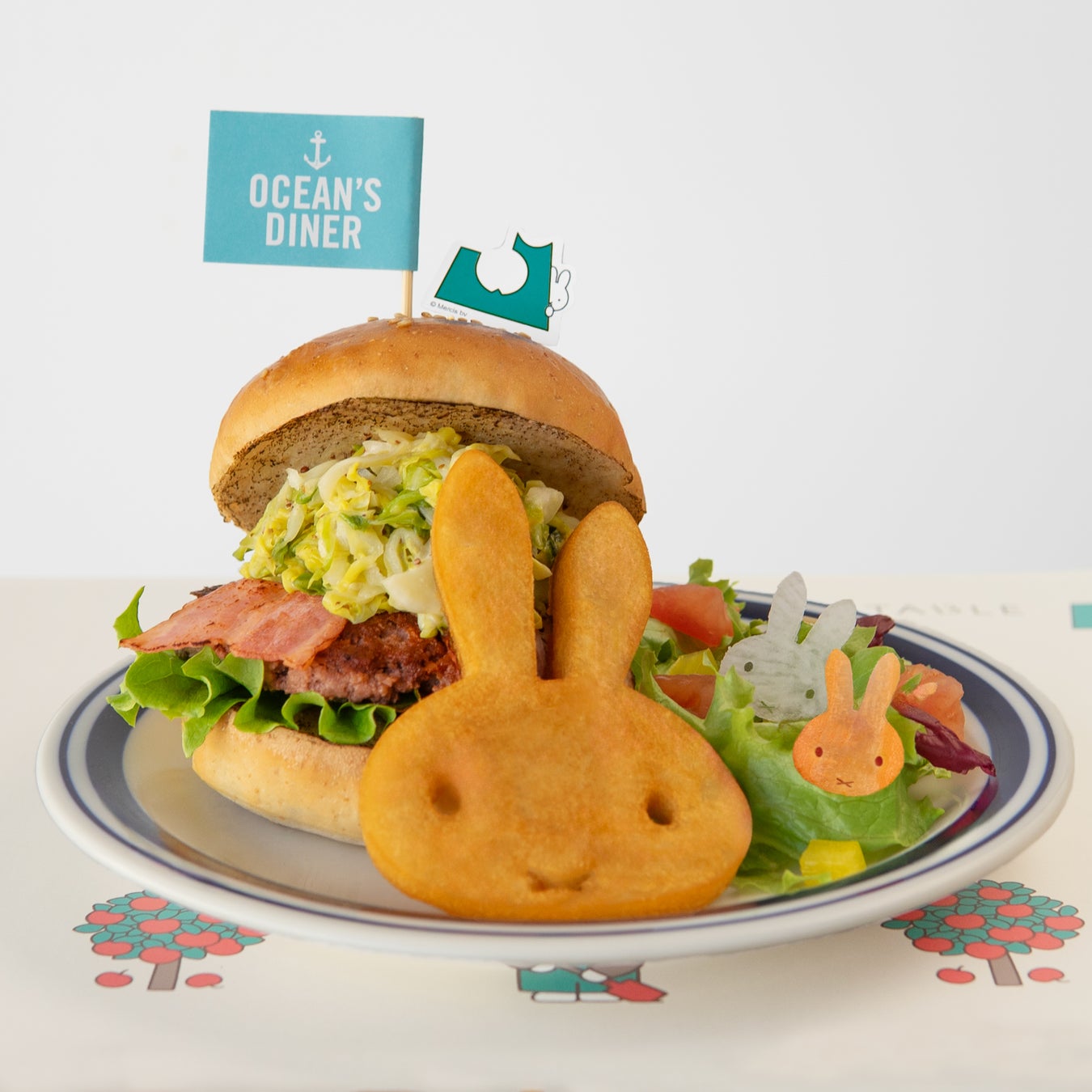 ◎バーガーはいずれもミッフィーのお顔のポテトフライとサラダの副菜がついています。