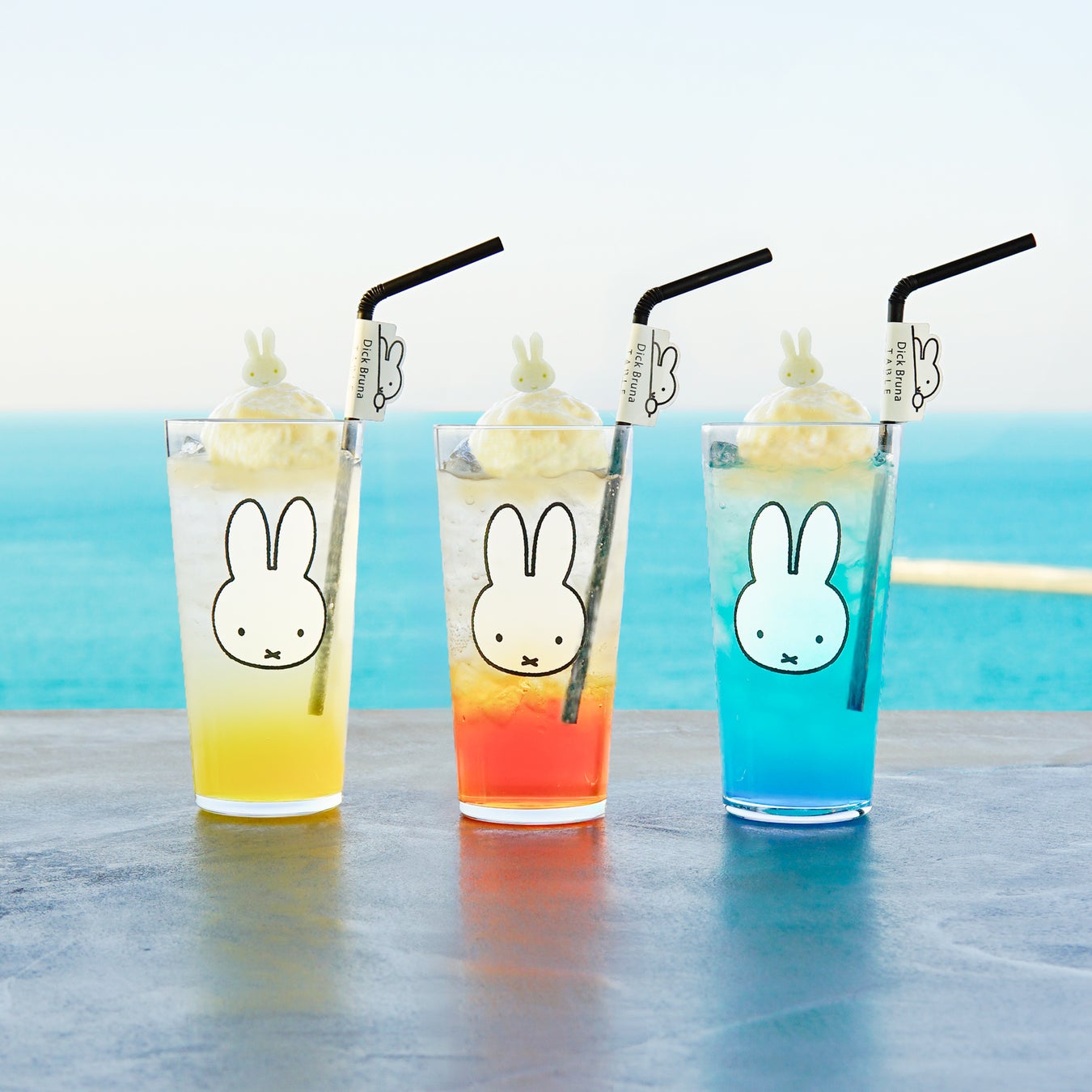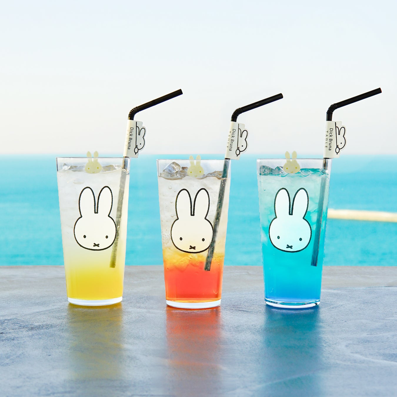 それぞれミッフィーのお顔がついたグラスでお楽しみいただけます。