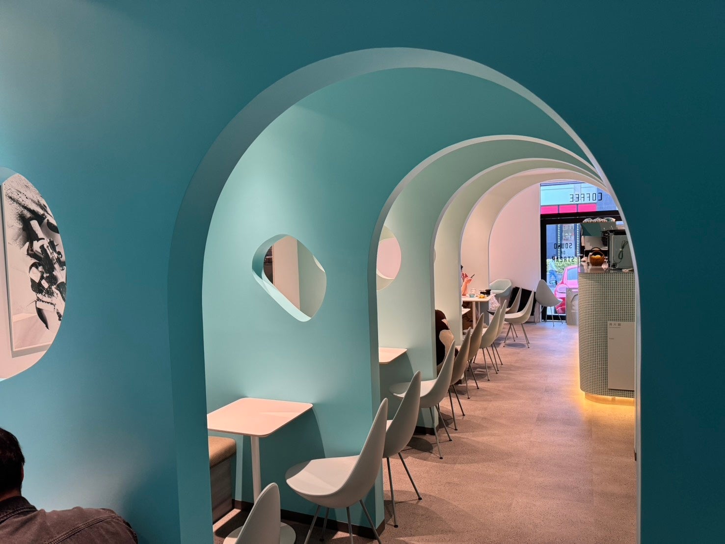 ・ライブサウンド: ミルクを攪拌するスチーム音、コーヒーを淹れる音。それら「働く音」さえも、空間に広がる心地よいリズム(波紋)としてデザインしています。